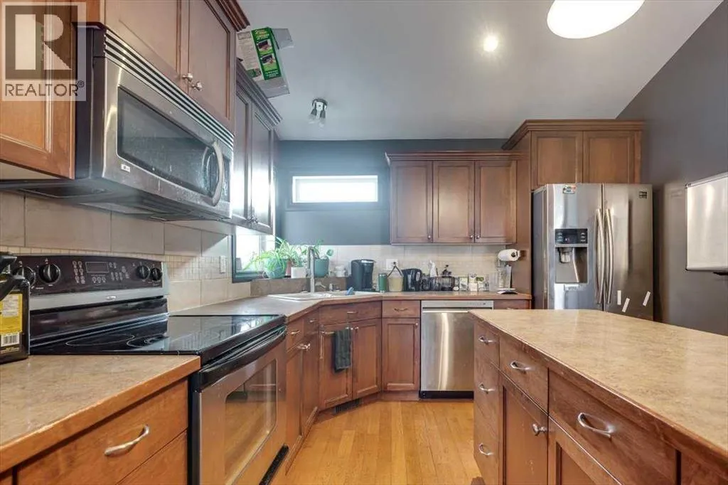 +"PublicRemarks": "Located on a fairly quiet street in the desirable community of Johnstone Crossing in Red Deer, this well-laid-out 3-storey split offers plenty of space and flexibility for a variety of lifestyles. Upon entering, an office sits to the left, ideal for working from home or easily converted into a home gym, while the right side provides direct access to the double attached garage, perfect for keeping vehicles protected during winter months. A few steps up leads to the main living area, designed with an open floor plan that includes a spacious living room featuring two large windows, a cozy wood-burning fireplace, and a door that opens onto the back deck and yard. This level also offers a generous dining area, a kitchen with a breakfast bar for casual meals, and a convenient 2-piece powder room. The primary bedroom is located on this floor and includes its own 5-piece ensuite bathroom, creating a comfortable and private retreat. The finished basement level adds even more living space with a large recreation or games room, two additional bedrooms, and a 4-piece bathroom, along with a dedicated laundry room and utility room. Outside, the fully fenced backyard offers room to enjoy outdoor living and includes space for RV parking, making this a practical and versatile home in a great Red Deer location. (id:62650)"