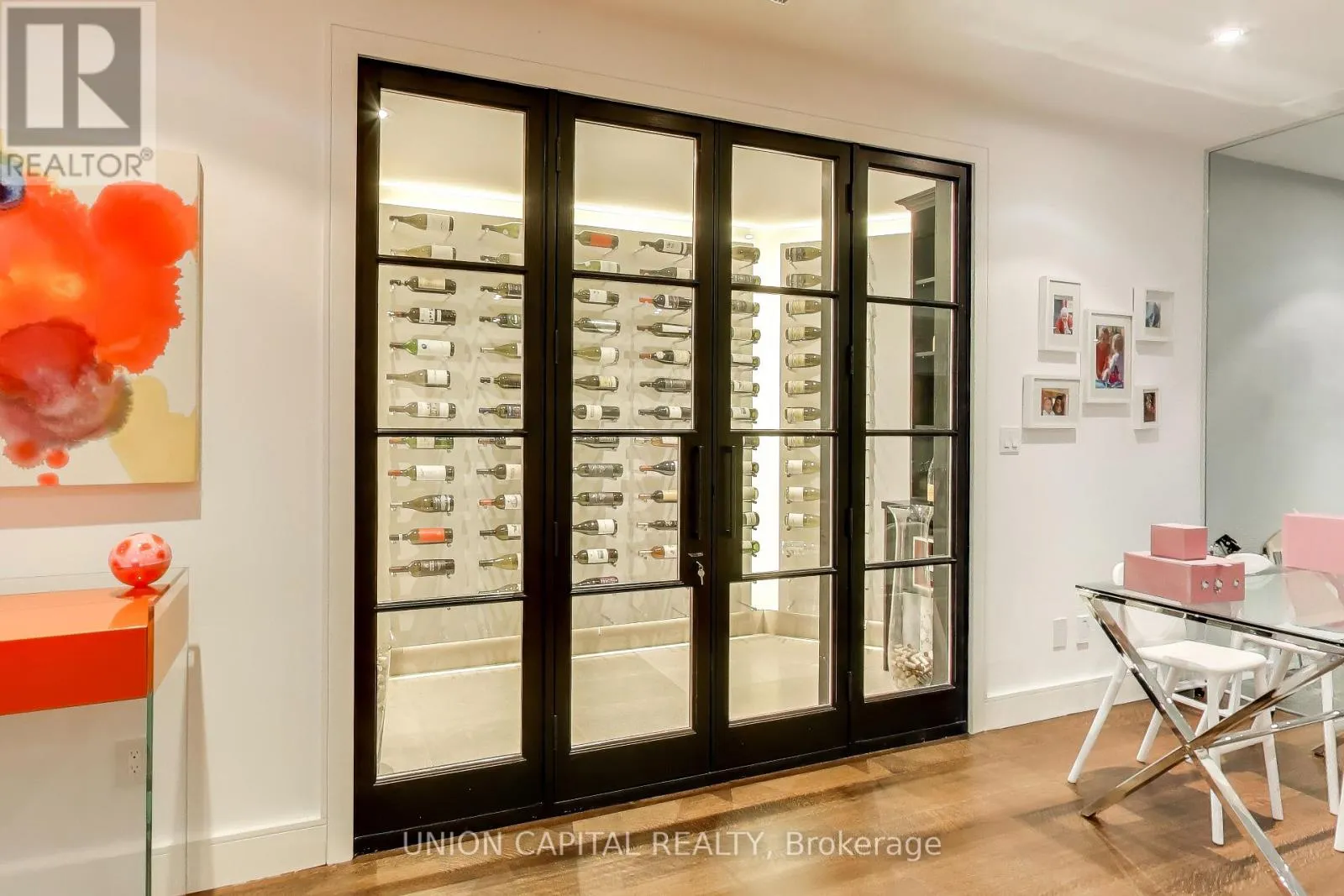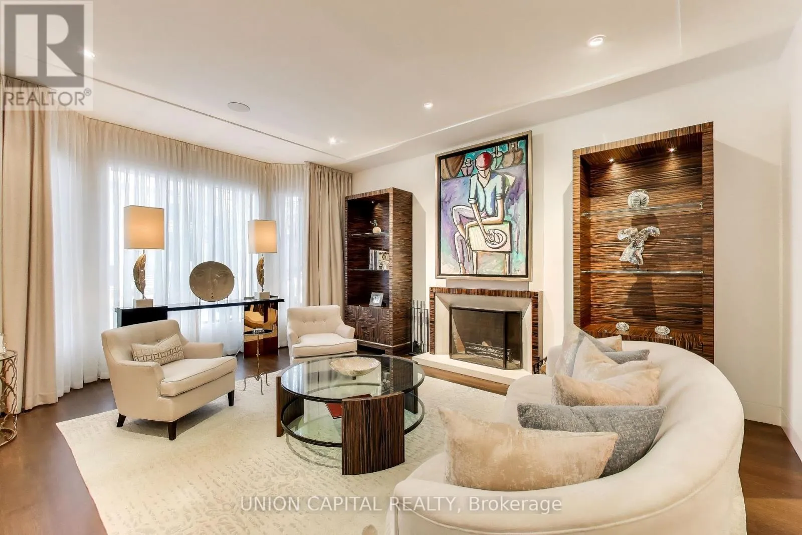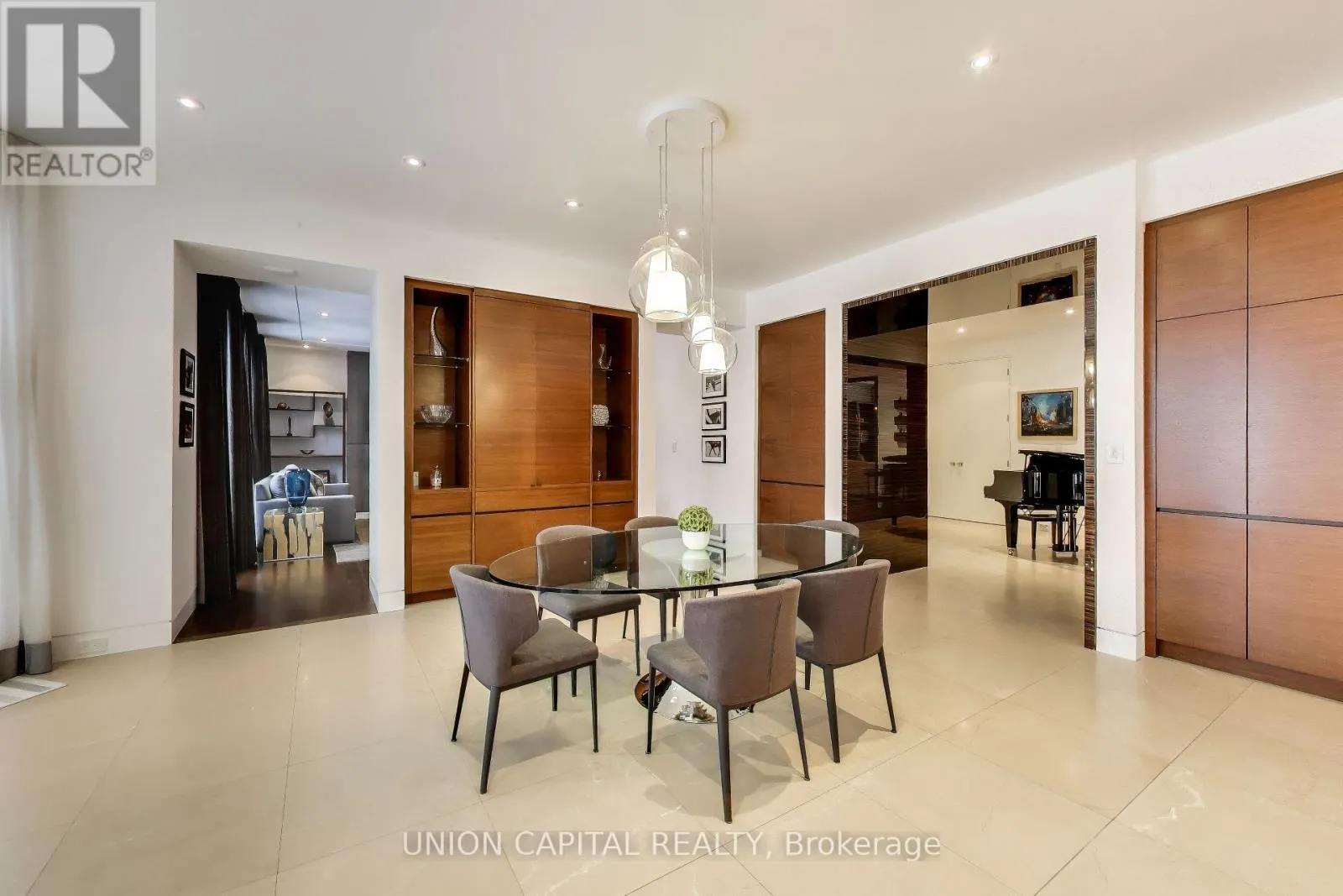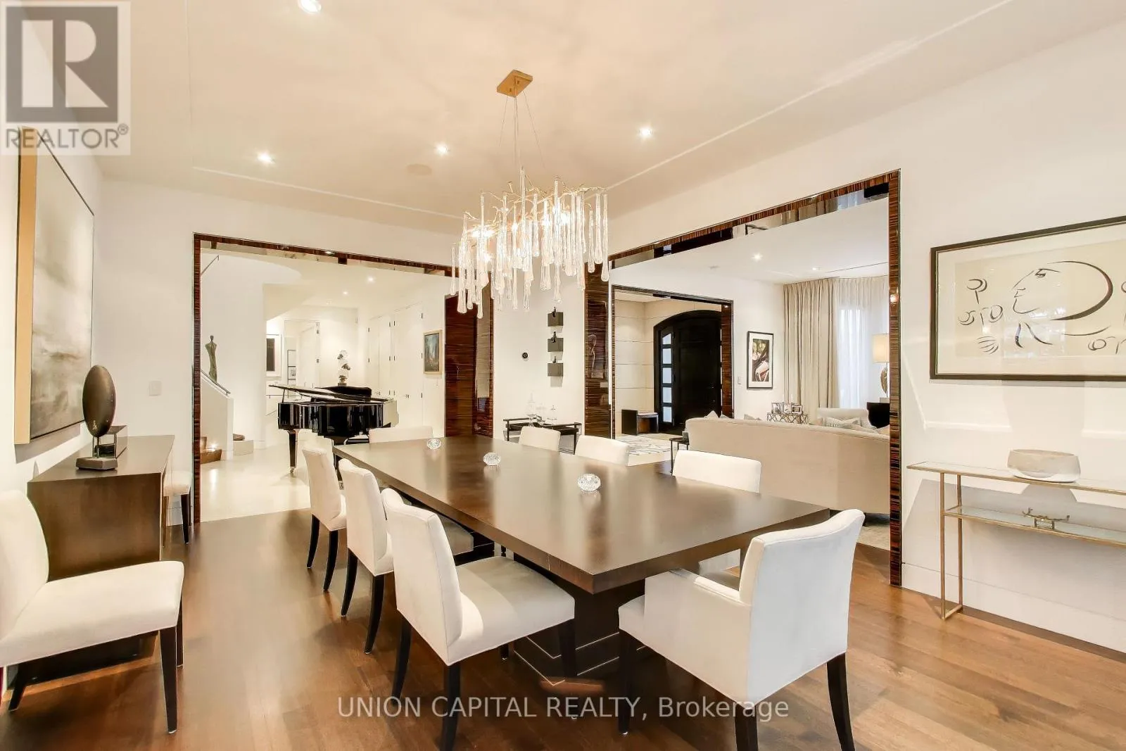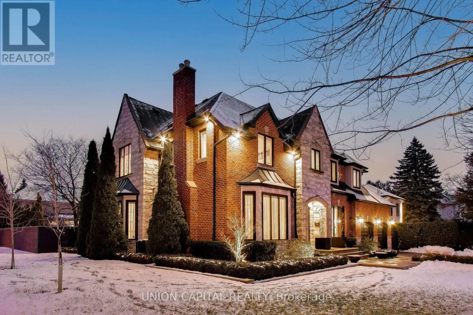 +"PublicRemarks": "Arguably one of Torontos most iconic estates, this French-style chateau is an extraordinary expression of European grandeur on a 3.12-acre double lot in the prestigious enclave of Bayview Ridge. Designed by renowned architect Gordon Ridgely, the residence commands unobstructed western views over the Rosedale Golf Club. Beyond the stately stone gates and circular drive, manicured gardens by Ron Holbrook frame a breathtaking setting featuring a negative-edge infinity pool, a reflecting pond with a stepped waterfall, tennis court, kitchen gardens, flagstone terraces, and a stone cabana. The striking facade spans nearly 150 feet, clad in Indiana buff limestone and rubble stone with Vermont unfaded green slate shingles and lead-coated copper details. An ivy-clad turret anchors the asymmetrical design, lending the home its signature silhouette. Inside, over 15,000 square feet of living space showcases Brazilian cherry wood floors with African wenge inlay, acid-etched antique Crema Marfil marble, coffered ceilings, Indiana limestone fireplaces, and solid North American cherry doors. Six principal bedrooms and two additional suites are complemented by ten baths and warm, richly detailed interiors. The main floor features an impressive library and office with wood-burning fireplace, a grand dining room with artisan-painted walls and ceilings, a conservatory beside the spacious family room, and a sunlit morning room perfect for coffee. Three staircases, including a hidden passage, lead to the lower level with a Bordeaux-inspired wine cellar, cigar room, gym, nanny suite with two bedrooms, a full kitchen, and a large recreation space. Upstairs, the primary suite offers a six-piece spa bathroom, dual dressing rooms, gas fireplace, and sweeping views. Each bedroom enjoys an ensuite bath and sitting area, blending luxury with practicality. This remarkable estate is a once-in-a-generation offering at once grand, intimate, and built to endure. (id:62650)"