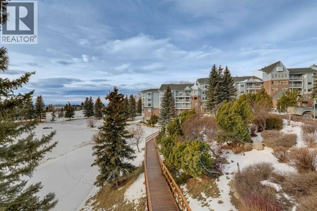 +"PublicRemarks": "Welcome to 2309 Hawksbrow Point NW, located in Dreamview Village, a highly sought-after 55+ community in the desirable NW Calgary neighbourhood of Hawkwood. This well-managed complex is known for its beautifully landscaped grounds featuring a private park, pond, fountain, and well-lit walking paths, creating a peaceful and welcoming environment.This bright corner unit offers an abundance of natural light and a comfortable, functional layout. The open living and dining area is warm and inviting, ideal for everyday living or entertaining. The kitchen features oak cabinetry, generous counter space, and room for a small dining table.The spacious primary bedroom is a standout, offering exceptional storage with a large walk-in closet plus his-and-hers closets. A second well-sized bedroom with a large window provides flexibility for guests, hobbies, or a home office. In-suite laundry and additional storage add everyday convenience.Residents enjoy access to an impressive clubhouse with mountain views, library, party room with full kitchen, pool table, shuffleboard, craft rooms, and frequent social activities. The building also offers titled underground parking, a storage locker, guest suites, car wash, workshop, elevators, and ample visitor parking.A fantastic opportunity for comfortable, low-maintenance living in one of NW Calgary’s most desirable adult communities. (id:62650)"