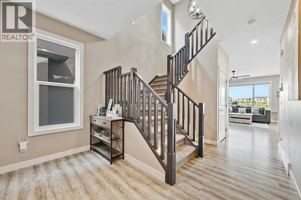 +"PublicRemarks": "*** OPEN HOUSE Saturday, January 17, 2026 2pm – 4pm *** Welcome home, in Cranston’s exclusive Riverstone. This 2,167 sq ft two-storey, family home, walks out directly to walking paths and a peaceful pond. Featuring 4 bedrooms and 3.5 bathrooms, this spacious family home is thoughtfully laid out with all bedrooms on the upper level—alongside a spacious bonus room. The open-concept main floor boasts 9' ceilings, oversized windows, and direct sightlines to the pond and walking paths behind. The gourmet kitchen is anchored by an 8-foot island, complete with quartz countertops, stainless steel appliances, and an extended walk through pantry with generous storage and unbeatable prep space. Upstairs, the spacious primary suite offers a 4 pc ensuite, with a deep soaker tub, glass shower, large vanity with makeup area, plus a generous walk-in closet. Recent interior upgrades include new lighting throughout—chandeliers, ceiling fans, and pot lights. The lower level, finished in 2025, provides over 730 sqft of additional living space, with a wet bar/kitchenette, large recreation room, office nook, full 3pc bath with a walk-in shower, and two storage rooms. The insulated, attached double garage (over 385 sqft) completes the package. Your outdoor living options include an expansive upper deck (complete with natural gas hook up, an oversized ground level patio, and easily maintained landscaping with unique foliage in the backyard. You'll especially love the direct access to walking trails and the nearby Bow River right from your backyard. Easy access to Deerfoot and Stoney Trails. Convenient to Seton YMCA, excellent schools, all the shops and restaurant amenities. Do not miss your opportunity to bring your family to one of Calgary’s most desirable upscale communities! (id:62650)"