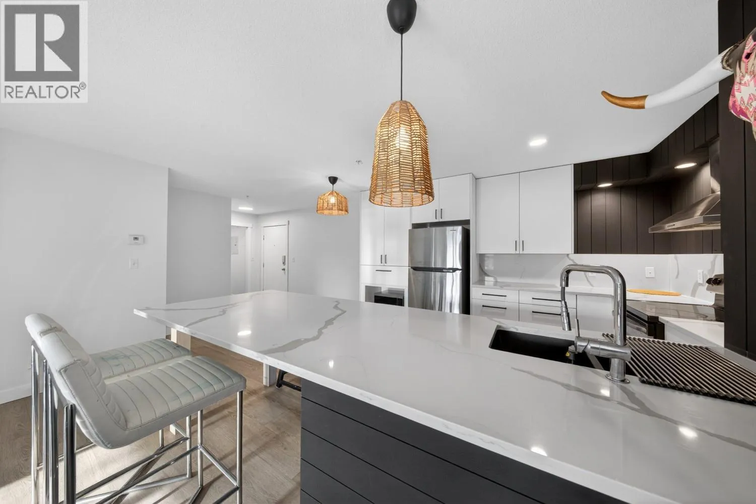 WELCOME to this beautifully renovated 2Bed 2Bath unit, ideal location in centre courtyard right across from the pool – Balcony overlooking the green space facing south towards the pool clubhouse and the lake beyond. An ideal floorpan with each room having it’s own washroom, separation of the rooms with the living area. Gorgeous kitchen features spacious custom countertops, and