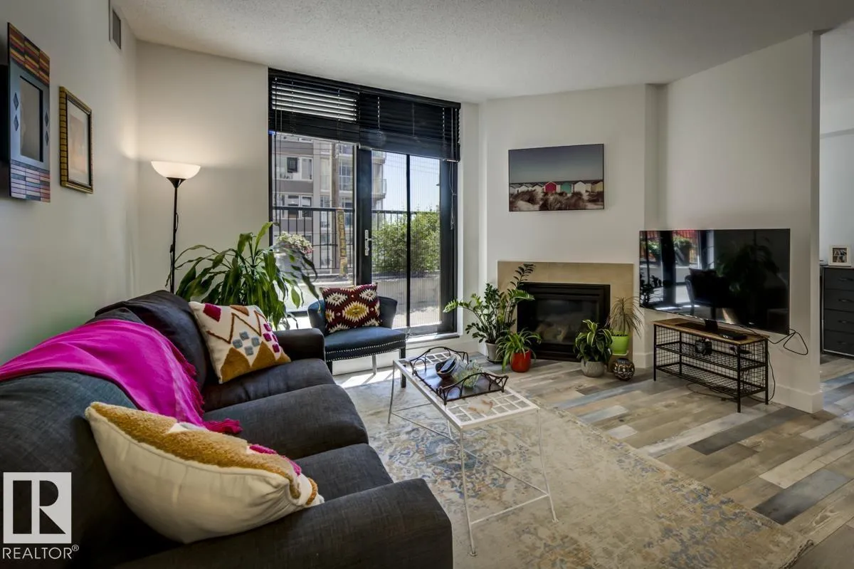 +"PublicRemarks": "Live in style at the prestigious Illuminada II! This upscale 1 bed + den unit is packed w/ upgrades & offers a rare blend of luxury, function, & location. The sleek kitchen features granite counters, S/S appliances & an eating bar, all overlooking a sunlit living room w/ a cozy fireplace. Step out to your MASSIVE 343 sqft PRIVATE PATIO—a true outdoor oasis w/ gas BBQ hookup & water tap, ideal for entertaining or unwinding. The spacious primary boasts a spa-inspired 3pc ensuite, while the den adds flexibility as a home office or guest space. Extras include a 2pc bath, in-suite laundry w/ added storage, A/C, new heat pump (2024), newer laminate floors (2018), LED lighting, updated shower (2018), new carpet (2023) & fresh paint. Titled underground parking adds convenience in this sought-after, well-maintained building. Steps to fine dining, shops, transit, river valley trails & Victoria Golf Course—this is elevated downtown living at its best! (id:64429)"