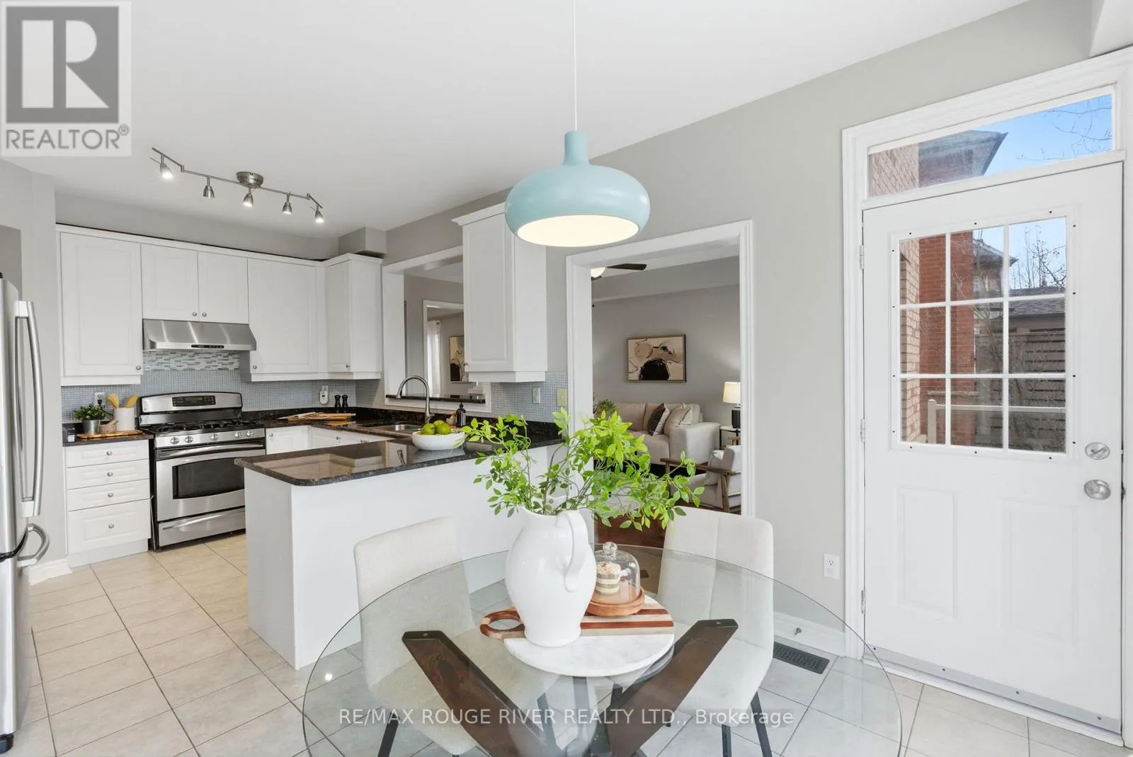 +"PublicRemarks": "Located in one of Brooklin's most desirable areas, this spacious Tribute built bungalow boast approximately 1800 sqft of main floor living space (as per builder floor plan.) This home greets you with soaring cathedral ceilings from the front entrance foyer to the expansive great room featuring a gas fireplace. The open concept layout includes a newly renovated kitchen featuring quartz counter tops, oversized island, recessed pot lights, walk in pantry and brand new appliances. A separate living room off the front foyer features crown mouldings and french doors. The main floor also offers a 4-pc bathroom with quartz countertops, main floor laundry with new washer/dryer, and direct access to the garage. Three bedrooms feature new carpeted flooring including the primary bedroom with a tile finished 4 pc ensuite with soaker tub and separate shower. Freshly painted throughout. Finished spiral staircase leads to finished living area in the basement perfect for an office space, remaining space unfinished and ready for your imagination. Updated front landscaping and stone landscaped backyard featuring a new deck. (id:62650)"