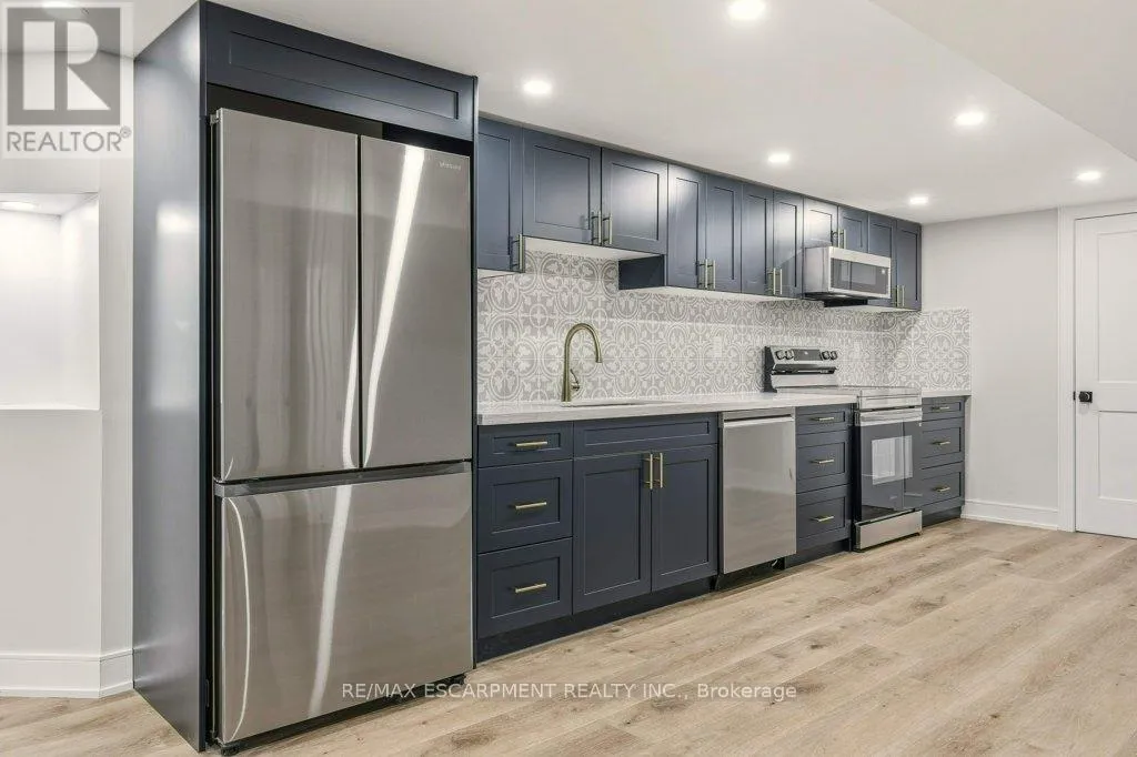 +"PublicRemarks": "Gorgeous 3+2 Bed, 3 Bath Bungalow w/New Basement Suite on a premium 75' x 140' lot backing onto School grounds. This beautifully updated spacious home, in family friendly S. Central Burlington, offers the flexibility of two separate Living spaces & Must Be Seen! Updated Main Level features new easy maintenance wide plank Laminate floors, LED Potlights, all new interior Shaker style Doors w/brushed nickel Hardware & fresh neutral paint through-out. Family sized Kitchen with new White soft-close cabinet doors, Quartz counters, s/s Appl's & walk-out to New 17' x 12' Deck w/BBQ gas line for easy Outdoor Living & Entertaining. Large, bright, o.c. Living & Dining Rooms make hosting a joy! Three spacious Bedrooms, a large 4 pc Bath & convenient main floor Laundry complete the main level. The Lower Level features a stunning, Professionally Designed, separate 2 Bedroom Suite that has just been completed. The gorgeous full Kitchen features new S/S Appl's, a B-I Microwave/Range Hood vented to outside, Designer Backsplash, Quartz counters & soft close cabinetry with brass details. Bright, Open Concept L.R./D.R. w/wide plank luxury vinyl, LED Potlights & new oversized windows. Private Primary Suite w/luxurious 3 pc Ensuite w/heated floors & his/hers Closets, a 2nd Bedroom w/luxe 3pc Bath w/heated floors & laundry w/new Washer & Dryer. The Suite is not only beautiful, extensive work was completed to bring the space up to current standards; original plumbing under the floor was removed & replaced, materials were added to sound proof the basement ceiling, & windows were replaced to current code for Egress & Efficiency. Single Garage w/inside entry plus 4 car Dbl. Drive. Private, Fenced yard w/Workshed. Fantastic location just steps to highly ranked Schools & transit, a short stroll to shopping, trails & the Burlington Mall. Just a short drive to numerous top notch Sports & Rec. facilities, the Lakefront & D.T. Shops. (id:62650)"