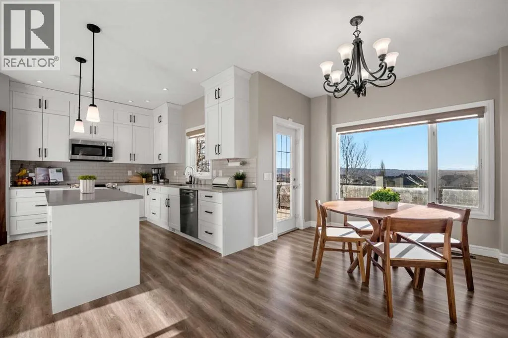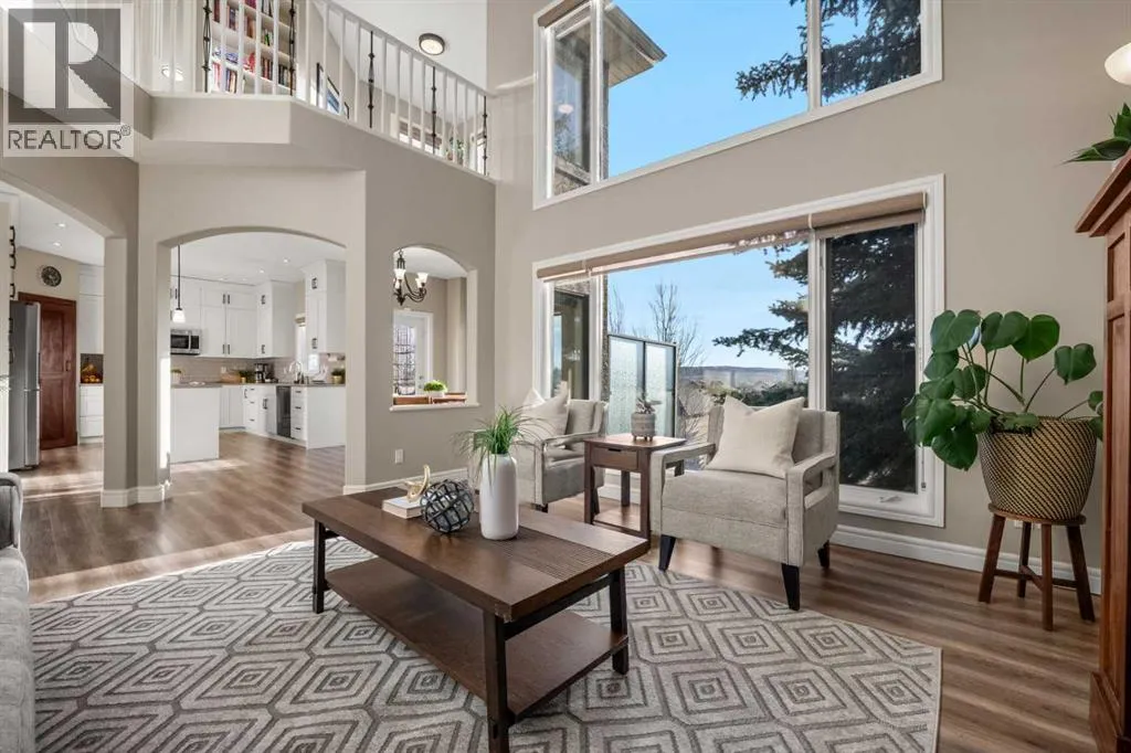 +"PublicRemarks": "*OPEN HOUSES SAT JAN 17th & SUN JAN 18th 1-3PM* An exceptional and rarely available offering on one of the most exclusive and sought-after streets in Tuscany. Perched on the ridge and backing directly onto the community’s central pathway system, this executive two-storey walkout showcases unobstructed mountain and city views from all three levels. The exterior exudes prestige with striking curb appeal, professional landscaping, stone accents, and a welcoming front porch. The heated triple attached garage includes a dedicated workshop bay with its own 100-amp panel and 220V power—a dream setup for hobbyists or trades.Inside, you are immediately greeted by an elegant spiral staircase with wrought-iron railing that curves dramatically to the upper level. The main floor features a flexible front room ideal as a dining room, music room, or additional living space. A spacious main-floor office, an updated guest bathroom, and a beautifully designed laundry/mudroom complete this functional area.The heart of the home is the breathtaking living room with two-storey ceilings, a fireplace with solid wood mantle, and a full wall of windows capturing endless sunlight and sweeping mountain views. The adjacent renovated kitchen is bright and elegant, offering ceiling-height white cabinetry, quartz countertops, stainless steel appliances, a mahogany-paneled pantry door, and a spacious dining area with access to the south-facing balcony overlooking the neighbourhood and the Rockies.The luxury vinyl plank flooring continues up the spiral staircase, where you are greeted by newly installed carpet on an open-to-below landing with wrought-iron railing and a cozy, inviting nook—perfect for reading or quiet mornings. The luxurious primary suite is spacious with breathtaking views and features a solid mahogany door to the ensuite, a walk-in closet, heated tile floors, dual vanities, a freestanding soaker tub, and a glass walk-in shower. Two additional massive bedrooms across the floating landing anchor the upper level and share a well-appointed bathroom complete with walk-in shower.The spiral staircase continues down to a bright, spacious walkout level—again with mountain views—featuring large windows, a huge rec room ideal for movie nights, two additional bedrooms, a full bathroom, and new carpet. The utility room includes two furnaces, a central vacuum system, a new water softener, a hub station for internet connection throughout the home, and a stand-up freezer and fridge.The backyard is beautifully landscaped with stone pathways and backs directly onto the ridge pathway system, connecting you to parks, schools, amenities and Tuscany’s outdoor lifestyle.Additional features include central A/C, smart LED lighting throughout, programmable exterior lighting, blackout blinds in all bedrooms, irrigation system, 3 outdoor gas hookups, & hot tub electrical rough-in. A signature home - rare, refined, and ready for the next family to enjoy. Book your private showing today. (id:62650)"