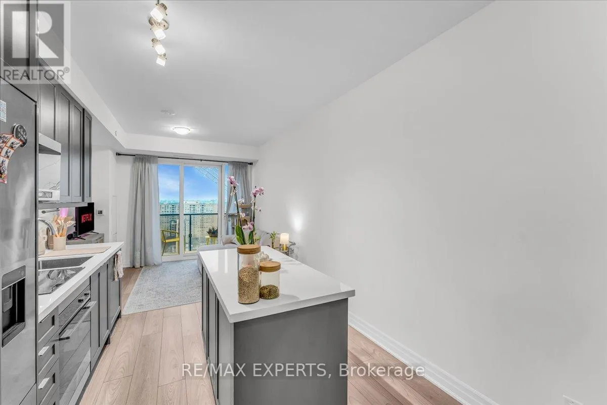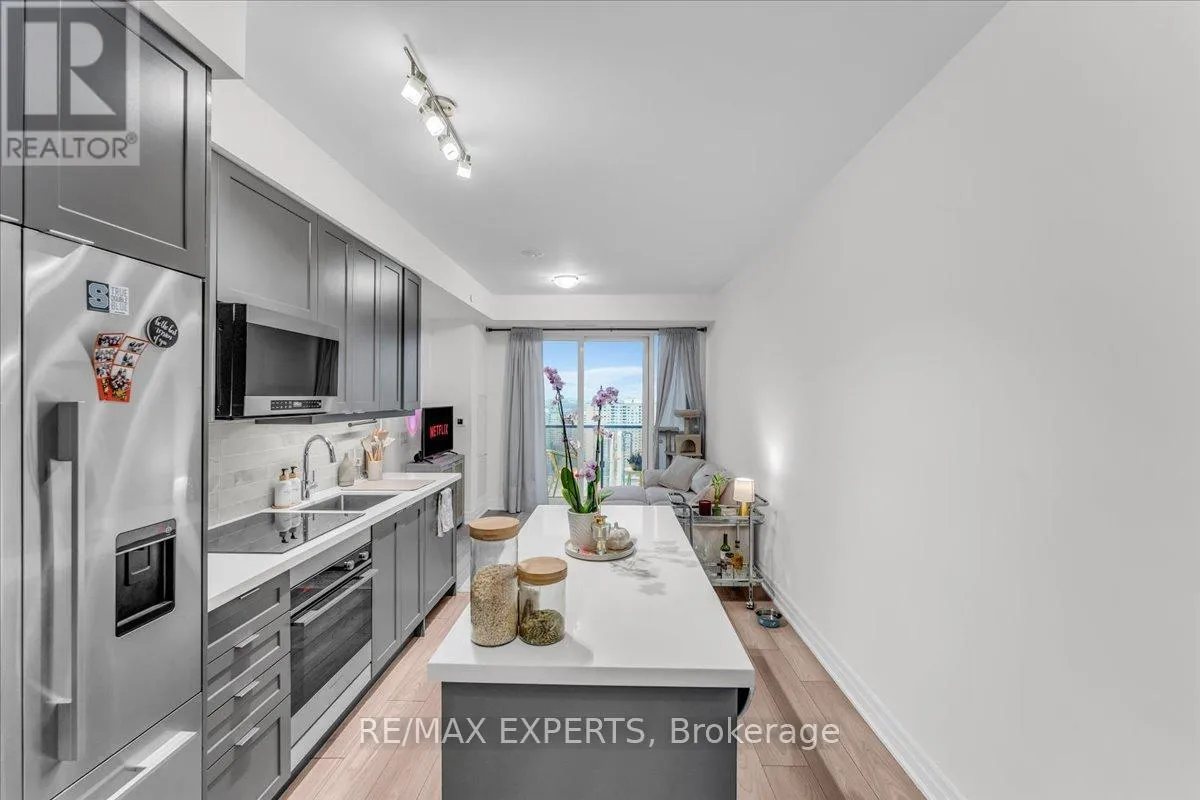 +"PublicRemarks": "Daniel's Luxury "One Park Tower" in the Heart of Mississauga City Centre. A grand arched entrance with a welcoming courtyard sets the tone for sophistication and exclusivity. This elegant 1-bedroom plus den, 2-bathroom unit offers 9-foot ceilings, a spacious primary bedroom with a 4-piece ensuite, and a private wraparound balcony showcasing breathtaking city views. The stylish kitchen features stainless steel appliances, ample cabinetry, and an in-suite washer and dryer. Includes one parking space and one locker. Enjoy exceptional, resort-style amenities including an indoor pool and sauna, guest suites, a fully equipped fitness centre, virtual golf, party and games rooms, and a beautifully landscaped terrace with BBQs. Ideally situated steps from Square One, Sheridan College, restaurants, shops, Mississauga Transit, and the GO Bus. Two grocery stores-Food Basics and 24-hour Rabba-are just around the corner. (id:62650)"