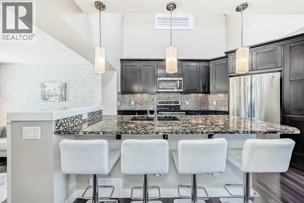 +"PublicRemarks": "Modern two bedroom condo with MOUNTAIN VIEWS and UPGRADES! Welcome to this unique and open condo in the sought after community of Auburn Bay. This condo will exceed your expectations upon arrival. Step into your gorgeous BRIGHT KITCHEN with QUARTZ countertop, tiled backsplash, plenty of cabinet and counter space and stainless steel appliances. This unit is packed with every available upgrade including wide plank LVP flooring, increased capacity washer and dryer, 9 foot knock down ceilings and lots of STORAGE and built in shelving. The 4 piece bathroom has two door for easy access from the bedroom or living space. Your new primary bedroom is bright with a large window and a walk through closet. This unit also has a second bedroom with a barn door. You will appreciate the view that faces the courtyard and is extremely quiet. The private OVERSIZED BALCONY with NATURAL GAS outlet offers a quiet place to entertain with courtyard and MOUNTAIN VIEWS. This home also includes HEATED UNDERGROUND PARKING with direct access to the elevator and a large storage unit. One of Calgary's PREMIER LAKE COMMUNITIES that offers a year round lake, tennis courts, beach, volleyball, skating and swimming. You are also minutes away from the SOUTH HEALTH CAMPUS HOSPITAL, YMCA, VIP THEATRE, many restaurants and pubs, shopping and schools, public transit, Deerfoot and Stony Trail and off leash dog park. This is a must see! (id:62650)"