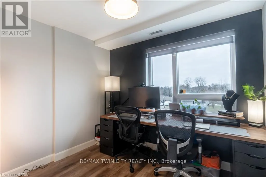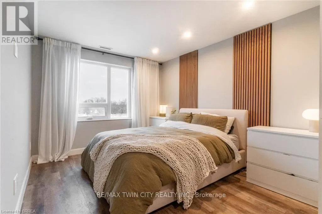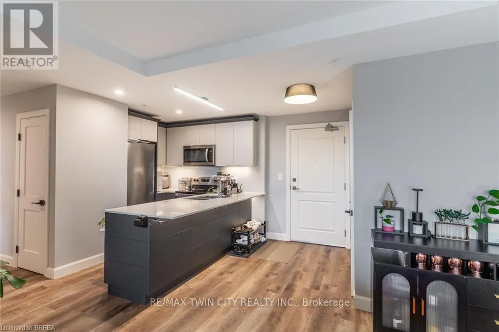 Welcome to Unit 412 at The Landing, a modernly designed boutique condo community at 34 Norman Street in Brantford’s vibrant north end. A minute to 403 acess, less than 30 minutes to Hamilton! This bright, open-concept suite features a functional living, dining, and kitchen layout with excellent flow and natural light throughout. The primary bedroom includes a walk-in closet and