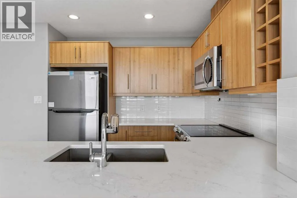 Welcome to this beautifully updated and meticulously maintained 2-bedroom, 2-bathroom condo featuring breathtaking southwest exposure and unobstructed mountain views from both the living room and primary bedroom. Flooded with natural light, this home offers the perfect blend of comfort, style, and convenience in one of Calgary’s most connected west-side locations. The home has been tastefully upgraded with brand-new quartz countertops