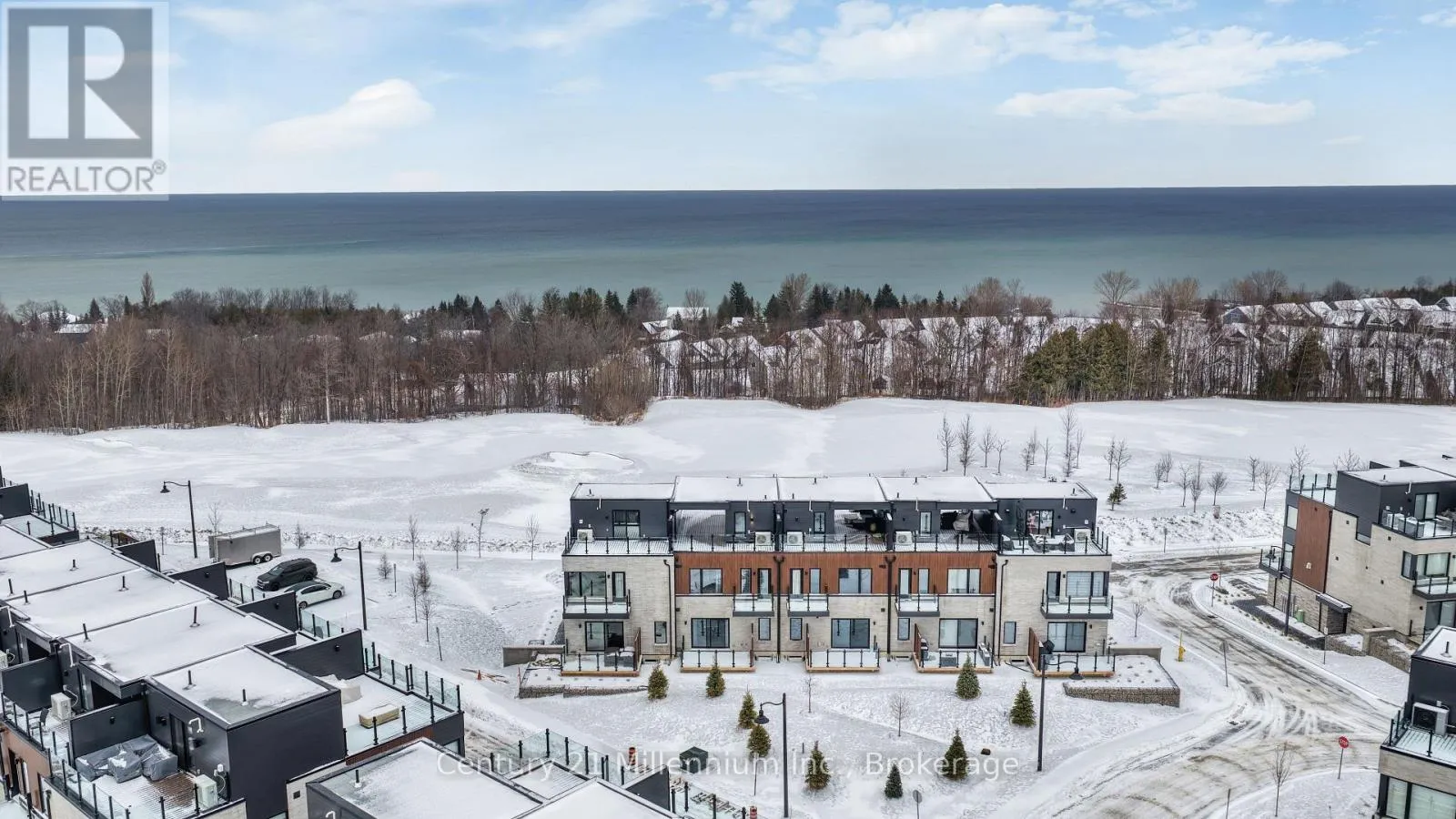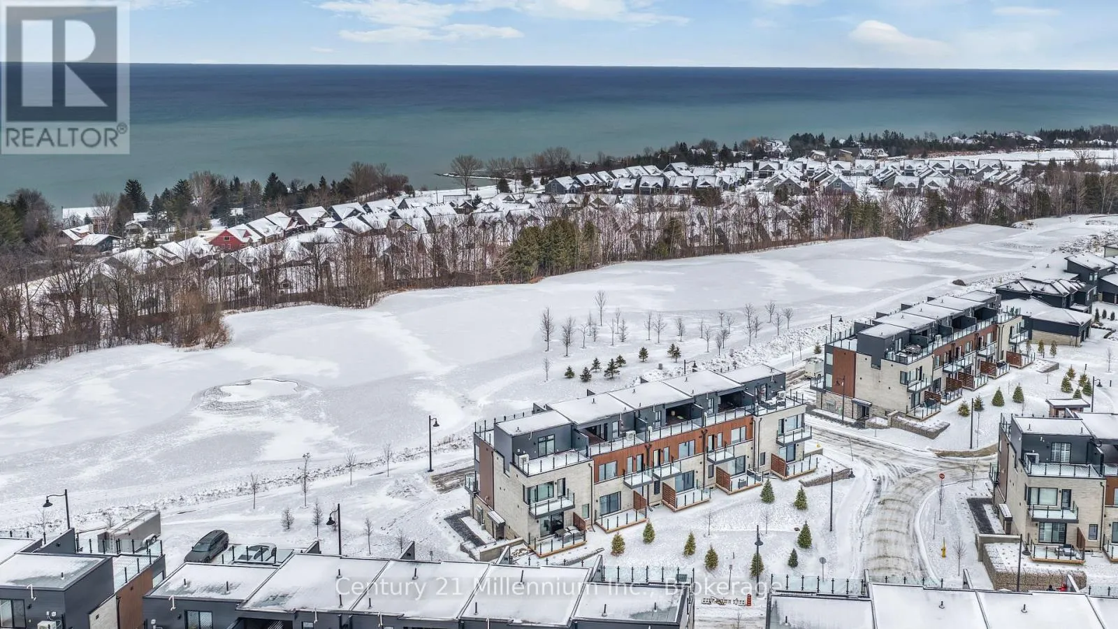 LORA BAY LIVING AT ITS FINEST- Experience luxury living in this stunning 3-story townhome, perfectly positioned to offer breathtaking views of Georgian Bay & the Lora Bay golf course. It has a tandem garage with entrance into a Foyer and stairs leading up to the next level to discover an open-concept layout that seamlessly connects the living, dining and kitchen