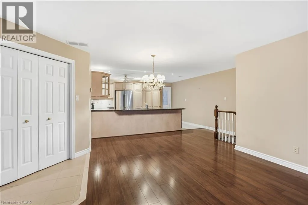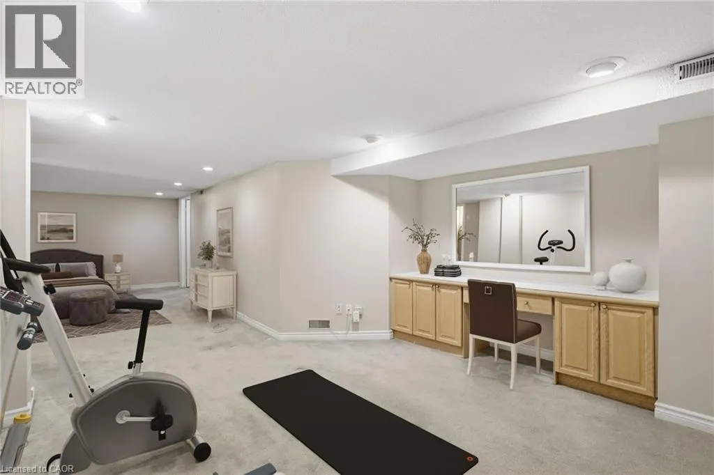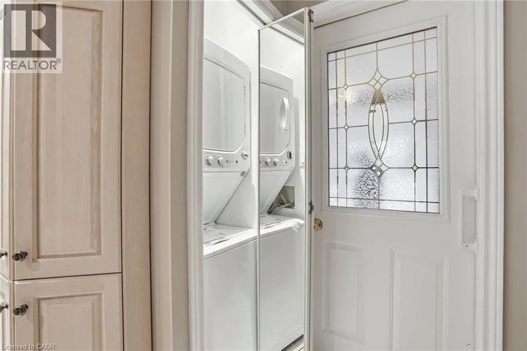 +"PublicRemarks": "MAIN FLOOR LIVING and spectacular private setting backing onto GREENSPACE with walkout to gazebo and brand-new extended deck. Amazing outdoor privacy tucked away in solitude at the rear of this exclusive complex, yet mere moments from everything, this centrally located, well maintained stacked end unit BUNGALOW offers a low maintenance lifestyle for folks who don’t want to compromise on size, style or comfort. Snow removal for driveway and steps, landscaping and exterior upkeep are all part of the comprehensive maintenance program; and if freedom to travel is a requirement, this home is completely ‘LOCK AND LEAVE’. This unit enjoys a spacious and comfortable open concept living area, low maintenance flooring with surrounding newer windows that embrace the outdoors, with a lovely GAS FIREPLACE sitting at the heart of it all. The gourmet kitchen features stone counters, breakfast bar, and newer stainless appliances. Located strategically on the main level is a large primary bedroom with stunning newly finished 3-piece ensuite & huge walk-in shower. A stackable washer & dryer combo completes ‘everything-you-need’ in main level convenience and is adjacent to the DIRECT GARAGE ENTRY. The finished lower level is ready to be claimed as your office, den, gym, or bed-sitting room with 3 pc ensuite, large shower and AMPLE STORAGE throughout. This unique home is walking distance to restaurants, cafes, shopping, banks, library, park, the WATERFRONT, and great access to highways 407, QEW, 403 and 401. Simply, a location with convenience that cannot be beat. Please note, some images have been virtually staged. (id:62650)"