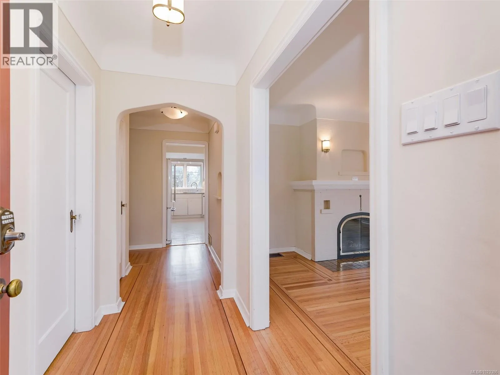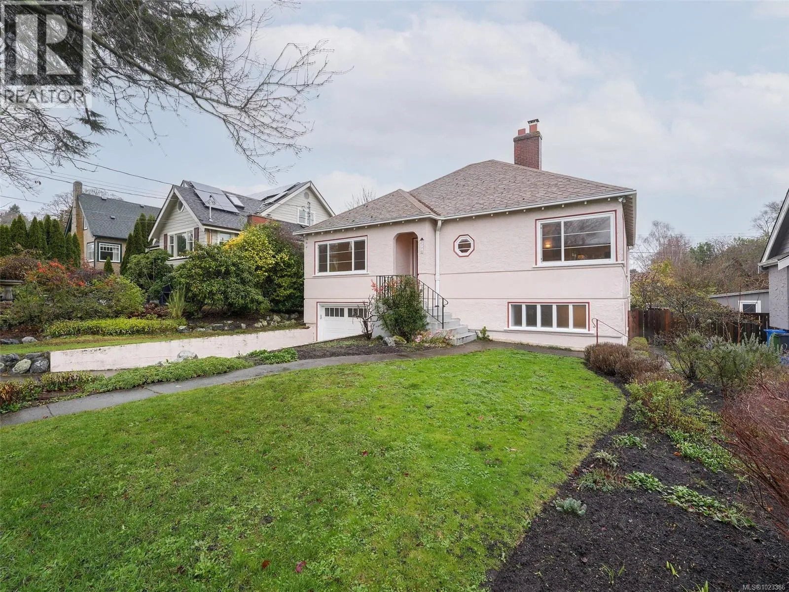 +"PublicRemarks": "Set back and elevated on a generous 9000 sq ft lot, this updated 1949 residence offers five bedrooms and three bathrooms in a prime Oak Bay location. Significant improvements include a new roof, heat pump w/ AC, full interior and exterior repainting, gutters and downspouts, and all new appliances. Bright interiors are enhanced by large vinyl thermopane windows and updated lighting throughout. The main level features a comfortable living and dining area with oak flooring, a versatile sunroom, a spacious eat in kitchen, two bedrooms, and a full bathroom. The lower level provides a separate garden entrance, family room, three additional bedrooms, and two three piece bathrooms including an ensuite, all completed with permits through Oak Bay. Outdoor upgrades include new landscaping, a private backyard sport court, new front yard fencing, and updated garage door mechanicals. An attached double garage with workshop space and ample off street parking complete this well located home. (id:62650)"