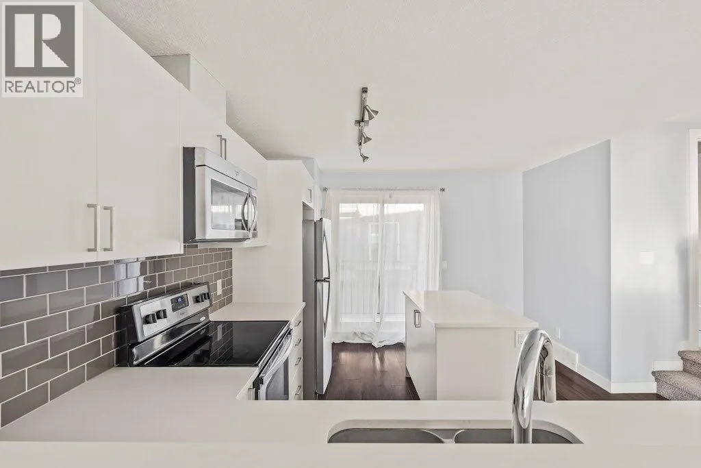 +"PublicRemarks": "An exceptional opportunity to own a one-of-a-kind, maintenance-free townhouse overlooking green space in the vibrant community of Livingston. Offering nearly 1,000 sq. ft. of single-level living, this meticulously maintained home blends comfort, functionality, and timeless design. The grand main living area features resilient luxury vinyl plank flooring and a soaring vaulted ceiling spanning the living room and kitchen, creating a bright and airy atmosphere enhanced by large windows and South-facing exposure that flood the space with natural light. The living room is positioned at the front of the home, where expansive windows overlook the peaceful green space, providing a serene and private setting. The spacious kitchen showcases timeless white shaker cabinetry, stainless steel appliances, quartz countertops, a central peninsula island with a breakfast bar, a corner walk-in pantry, and abundant storage. There is ample room for a flexible dining area, making the space ideal for both everyday living and entertaining. Overlooking the living room, the kitchen layout is perfect for hosting or for those with young children. Completing the main level is a rear mudroom with direct access to the attached garage, a convenient 2-piece powder room, and a dedicated laundry room. The spacious primary bedroom is also located at the front of the home, offering additional green space views. It features a generous 4-piece ensuite with dual sinks, a walk-in shower, and a walk-in closet with upgraded shelving. The lower level awaits future development, offering excellent potential for a large recreation room, additional bedroom, bathroom, and storage space. An insulated attached garage completes the home, keeping your vehicle secure and clean year-round. This home is ideally situated with nearby shopping, restaurants, and cafes all within walking distance or a short drive.. Daily commuting is made easy with nearby public transit stops and quick access to Stoney Trail. Don’t miss this opportunity to own a fantastic, low-maintenance property in one of Calgary’s most desirable communities - Livingston. (id:64429)"