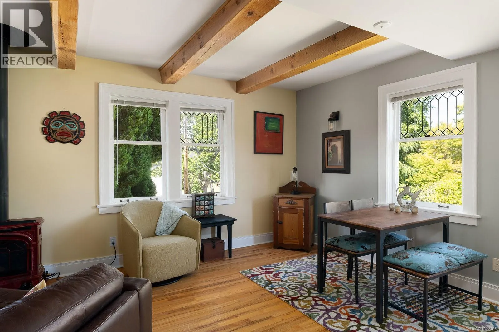 +"PublicRemarks": "Set along one of Rockland’s beautiful tree-lined streets, this unique two-bedroom, two-bathroom home is part of a charming 1925 character conversion with just five residences. Warm and inviting, it offers an abundance of natural light and a generous 322-square-foot private south-facing deck with serene views of the surrounding gardens. The main level features a spacious living and dining area with hardwood floors, a gas fireplace, and elegant beamed ceilings. The open, airy kitchen connects seamlessly to the living space, while a bedroom, full bath, and laundry round out the main floor. Upstairs, the primary bedroom serves as a peaceful retreat, featuring two skylights that fill the room with natural light, a private balcony, and a well-appointed ensuite bathroom. This sought-after neighbourhood is just a short distance to Government House, Downtown, and Cook Street Village. With a parking space, storage locker, generous in-unit storage, and a quiet residential setting close to amenities and beautiful parks, this is a wonderful opportunity to own a piece of Rockland’s history. (id:62650)"