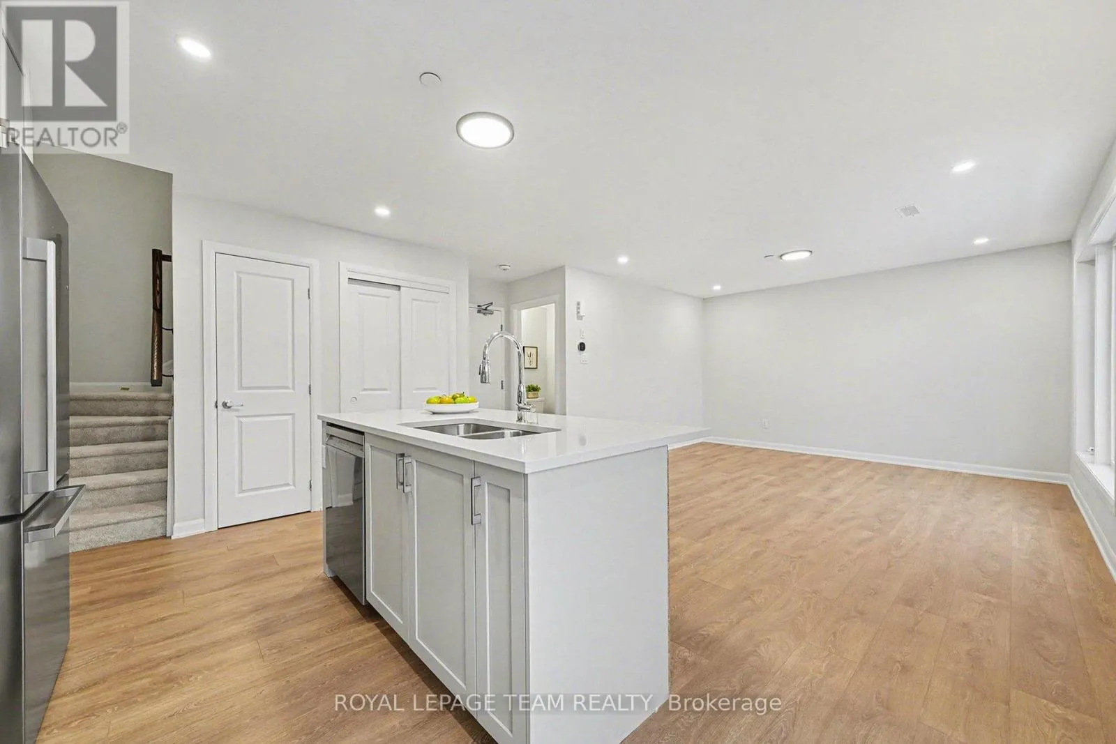 +"PublicRemarks": "Beautifully maintained townhouse situated in a quiet, family-oriented neighbourhood. This bright rental home features 2 bedrooms and 2 bathrooms. The main level offers a wide front foyer with convenient access to the garage and laundry room. The second level showcases a spacious living and dining area with laminate flooring and a patio door opening to a large balcony-ideal for relaxing or entertaining. The open-concept kitchen provides ample cabinetry and counter space, perfect for everyday cooking.The upper level includes a primary bedroom with a walk-in closet, a second generously sized bedroom, and a full bathroom. Prime location close to shopping, including Costco, schools, parks, public transit, and with easy access to Highway 416 and many other amenities. No pets. No smokers. Available March 1, 2026. (id:62650)"