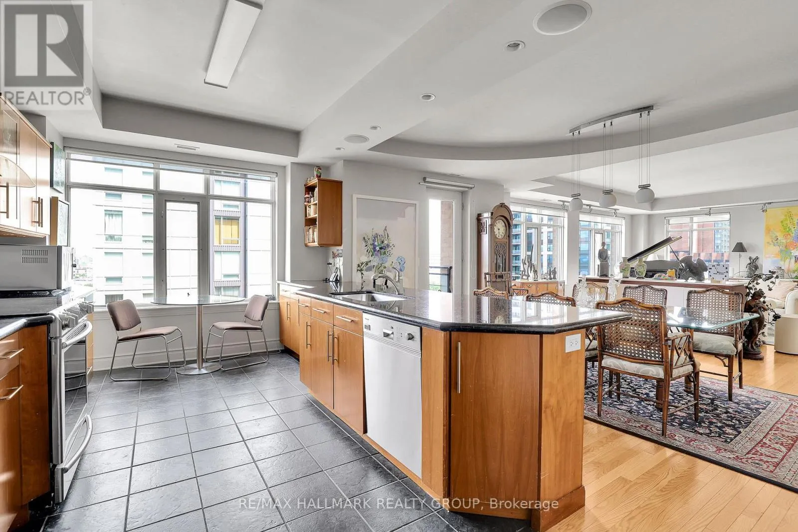 +"PublicRemarks": "Welcome to a picturesque and quiet spot on the fringe of Centretown at 570 Laurier; a meticulously maintained building, boasting curb appeal and convenience. From the entry, enjoy ample natural light from the back wall windows and glass door to a private balcony. Hardwood flooring, tile and a neutral palette mingle with a mirrored wall and sleek fixtures to create a bright and inviting space. To the left, a well-organized kitchen faces an open-concept living area, with a large dining room, easily convertible to a spacious home office as well. Rest easy in a well allocated primary bedroom, dressed in custom closets and featuring convenient laundry and ensuite bathroom. Exercise is efficient with a well equipped gym and indoor pool. Walk to work, enjoy Centretown amenities and restaurants, and all of the downtown perks at your fingertips. Book your viewing today! (id:62650)"