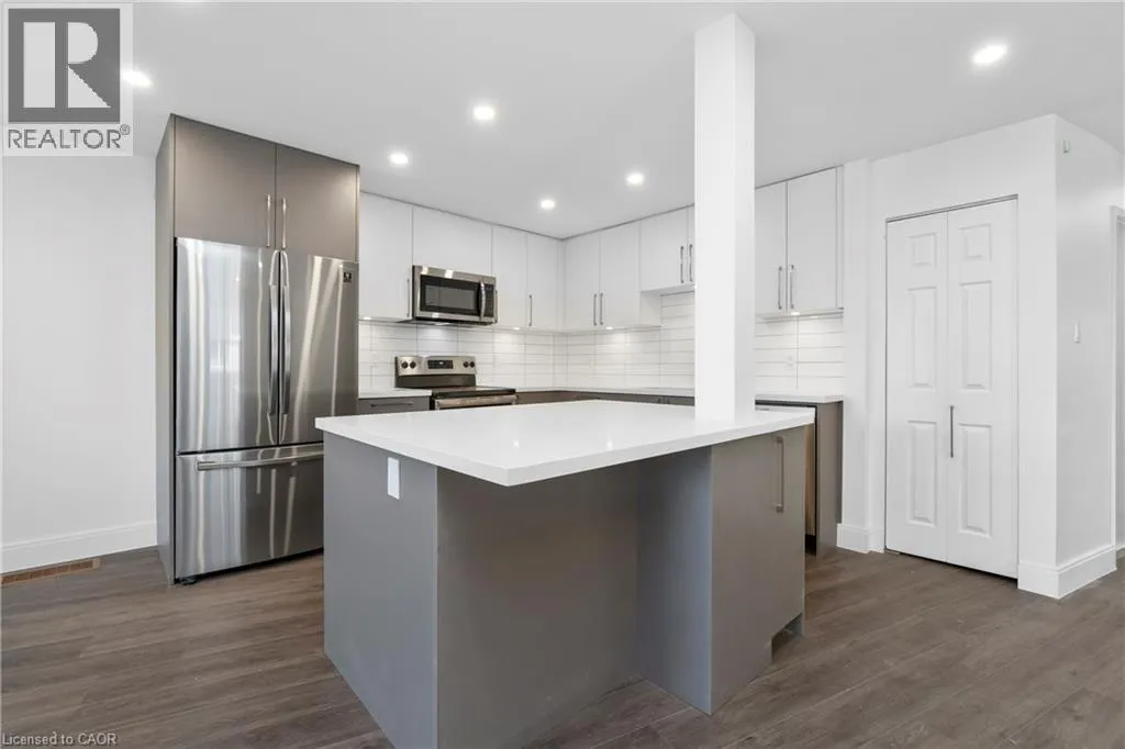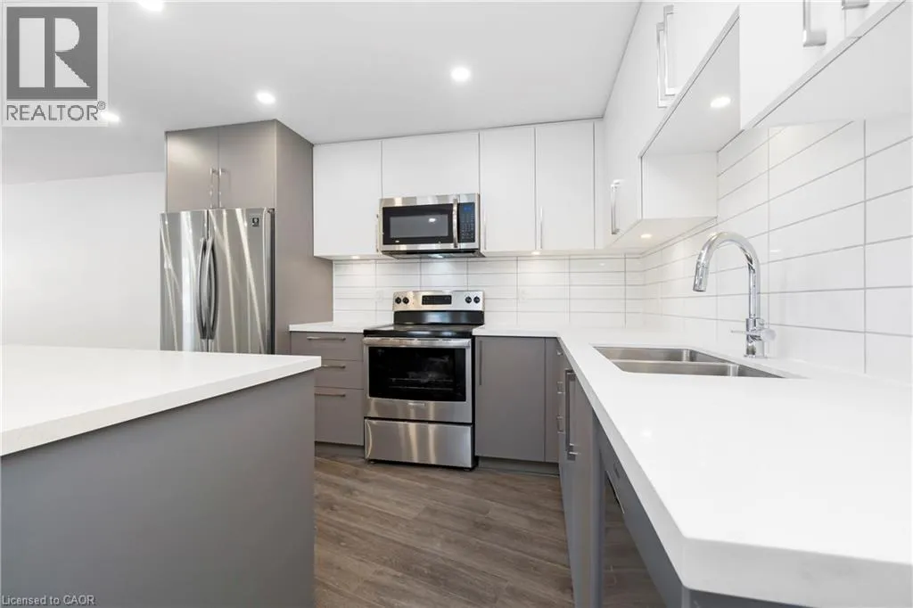 +"PublicRemarks": "Renovated from top to bottom - this unit boasts 2 large bedrooms and 2 bathrooms, including a primary 3pc en-suite. The open concept kitchen/dining area is filled with natural light and has been updated with brand new modern fixtures, quartz counters and stainless steel appliances. This unit also includes a large laundry room with new washer/dryer and sink. Situated at the end of a court in a quiet neighbourhood in North Burlington, this unit is close to all amenities, schools, parks and has backyard access to the local bike path. Space for 2 small cars or 1 larger car. Landlord will take care of lawn maintenance. Internet Included. Available as of March 1st. (id:62650)"