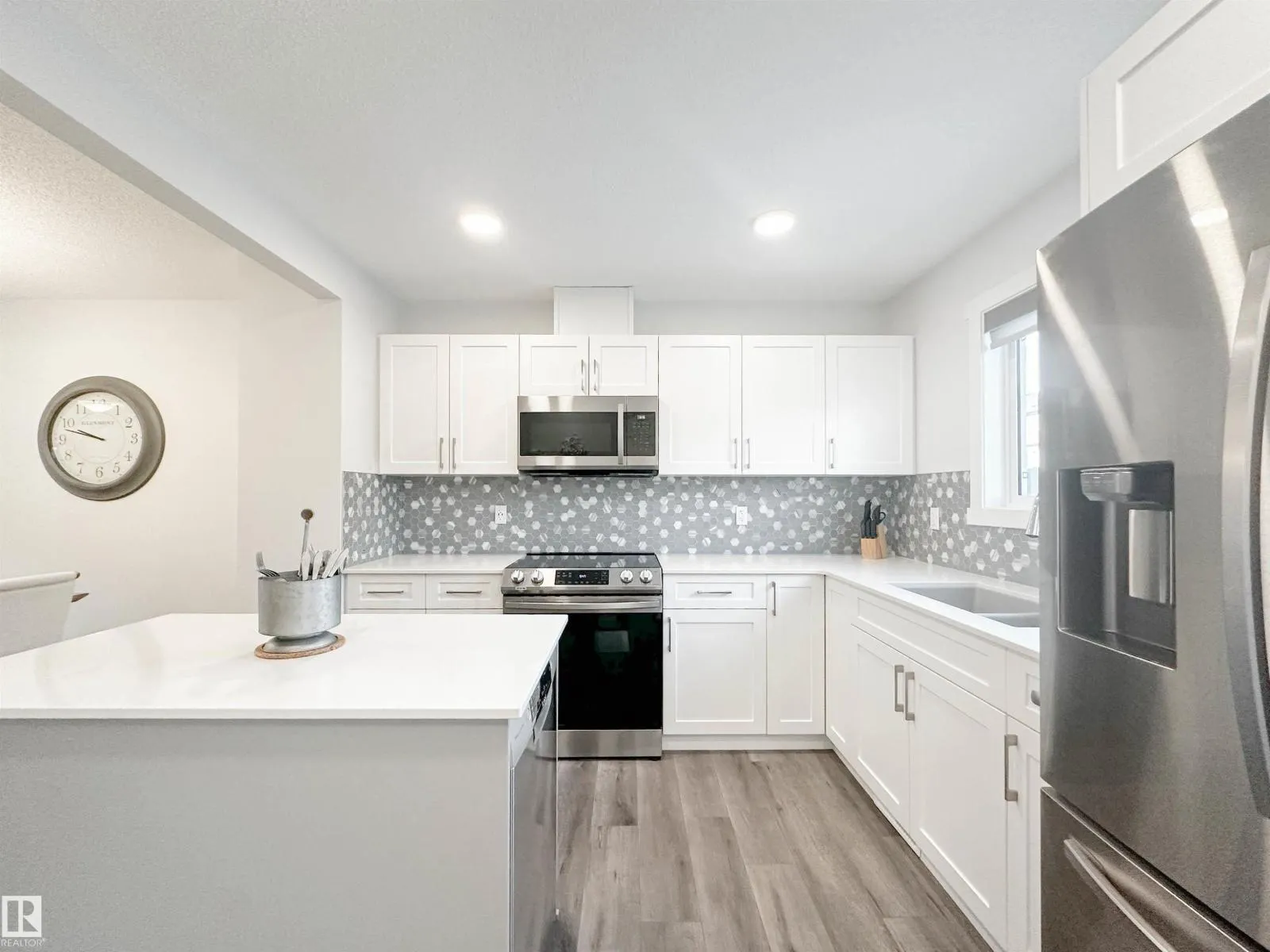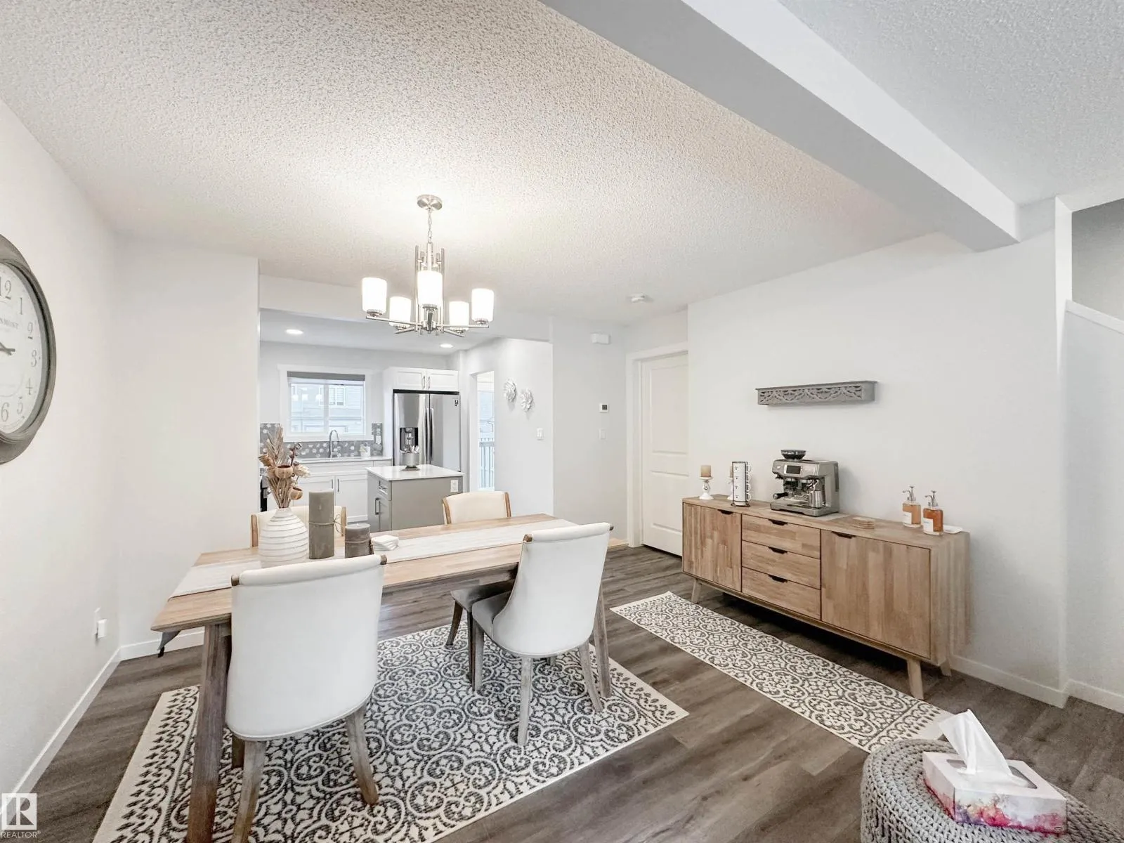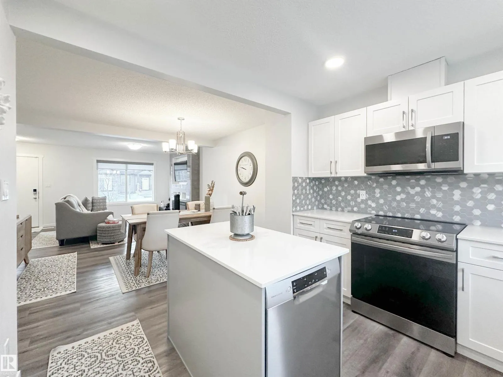 Experience refined townhome living in this thoughtfully upgraded residence designed for both style and comfort. The main level showcases elegant luxury vinyl plank flooring, a sophisticated electric fireplace, and an open living and dining area ideal for entertaining. The contemporary kitchen is finished with quartz countertops, upgraded stainless steel appliances, center island and a striking backsplash, creating a polished and