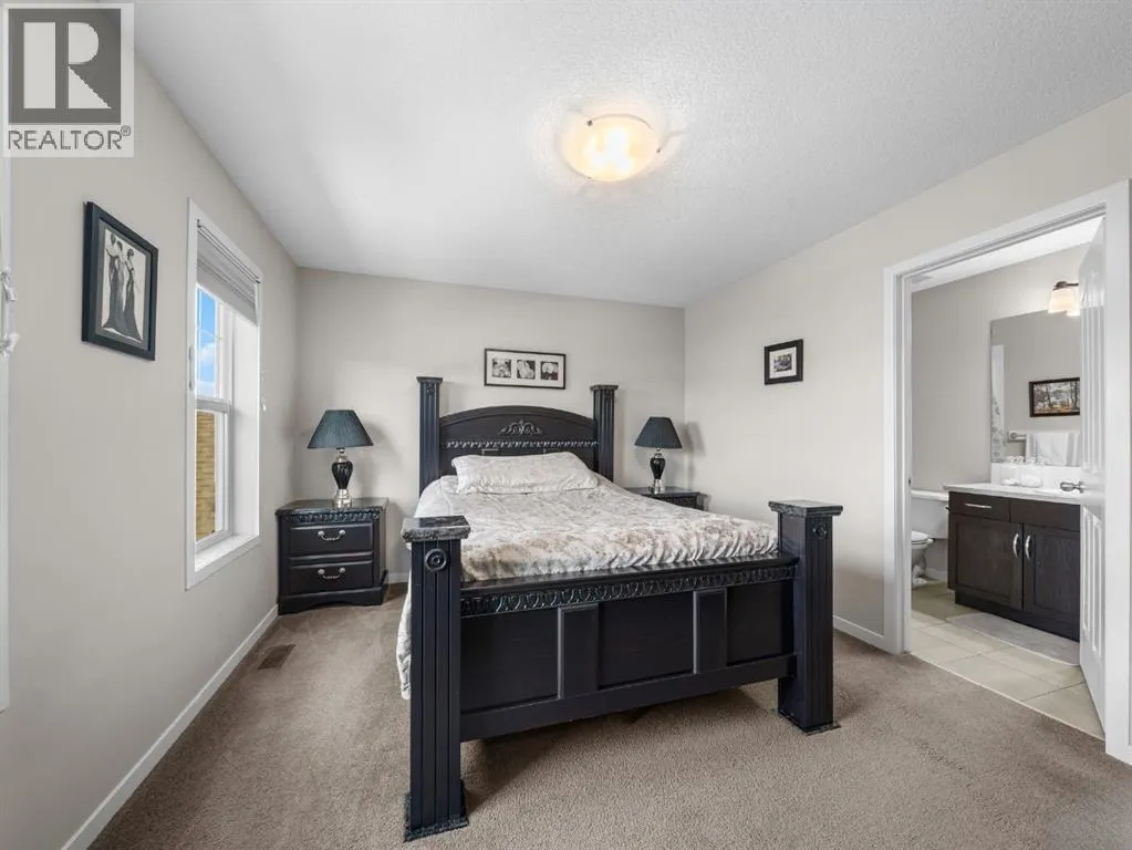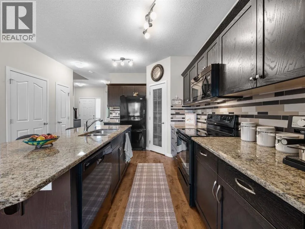 +"PublicRemarks": "Immaculately maintained, this spacious 3 bedroom, 2.5 bath home features a thoughtfully designed layout with a main floor den, perfect for a home office or flex space. The kitchen showcases dark stained cabinetry, black appliances, granite countertops, a spacious island and a pantry. The dining area is ideal for family gatherings and entertaining guests, while 9 foot ceilings on the main floor enhance the bright, open feel of the large living room. A functional mudroom leads to a two tier deck and a generous backyard with ample space to build a garage, garden or enjoy outdoor activities. Upstairs, the primary bedroom includes a 4 piece ensuite and a walk-in closet, while the other two well sized bedrooms share a full bathroom. Enjoy the convenience of upper floor laundry. Notable upgrades include central air conditioning, knockdown ceilings, rounded corners, 9 foot basement ceilings, dual-zone heating, a rough-in for central vacuum, hardwood flooring in the kitchen, dining, and living areas, tile in the entryway and bathrooms and newer washer, dryer and dishwasher. Located in the well established community of Cranston, this home offers an exceptional blend of nature and modern amenities. Residents enjoy access to the Bow River pathway system, Fish Creek Park and extensive walking pathways, including routes with stunning views. The area is served by K–4 and 5–9 public schools, as well as a K–9 Catholic school. Cranston’s vibrant community centre features a gym, meeting and party rooms, tennis courts, splash park, outdoor skating rinks and a variety of programs. South Health Campus, a high school, and the YMCA in Seton are just minutes away. The area also offers easy access to Deerfoot Trail and Stoney Trail, making for a convenient commute. (id:62650)"