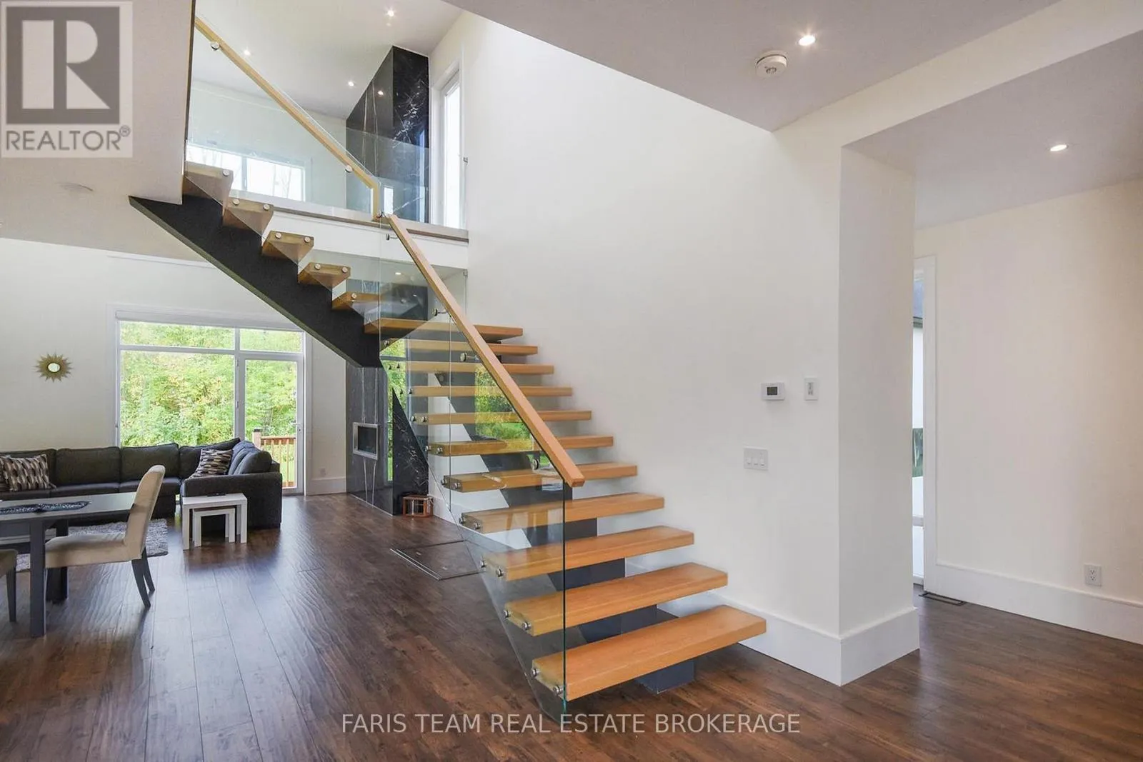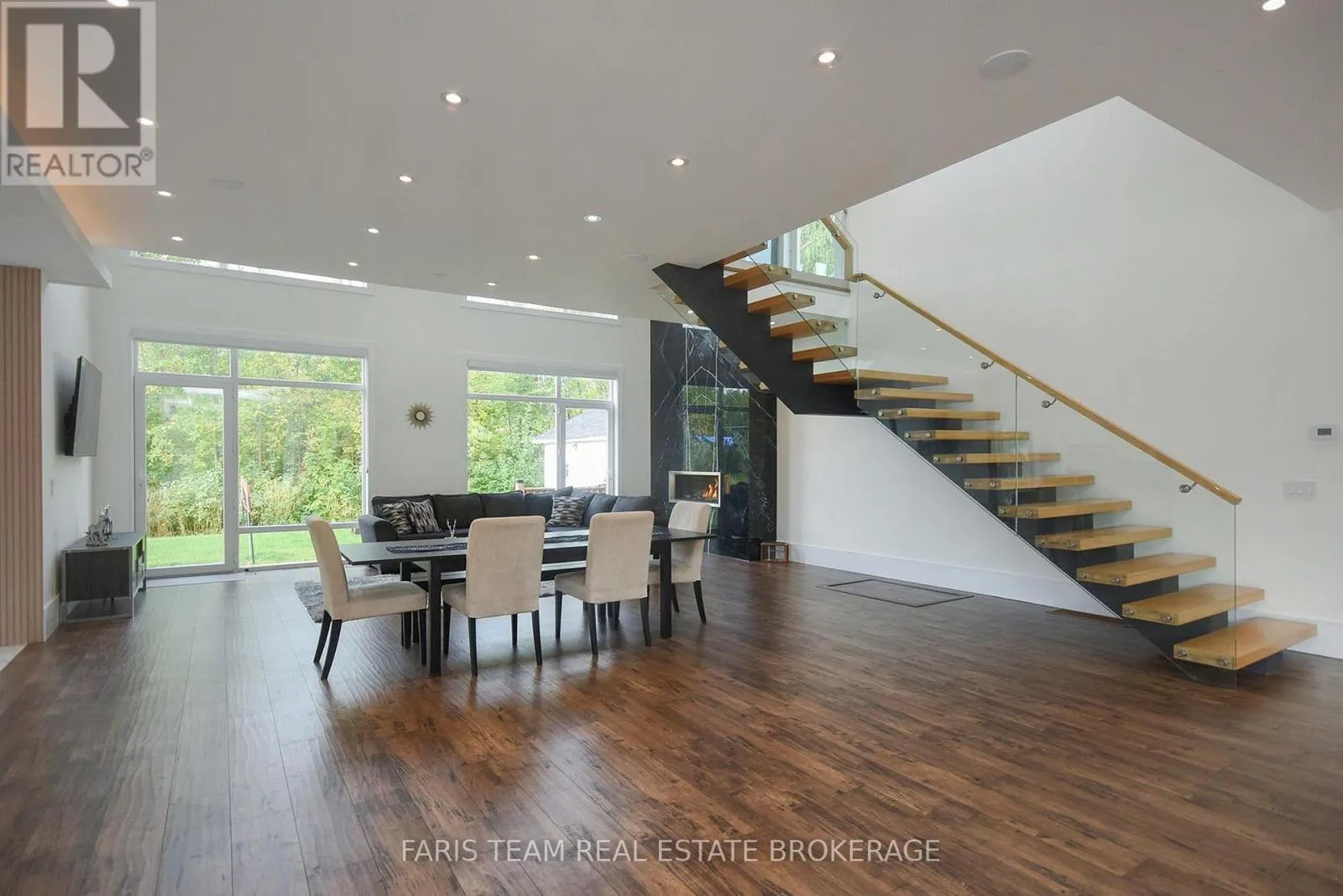 Top 5 Reasons You Will Love This Home: 1) From the moment you step inside, this modern luxury home makes a statement with a dramatic stone fireplace soaring to the double-height ceiling and a breathtaking glass floating staircase that sets the tone for refined living 2) Wake up to stunning Georgian Bay views and end your day on the expansive