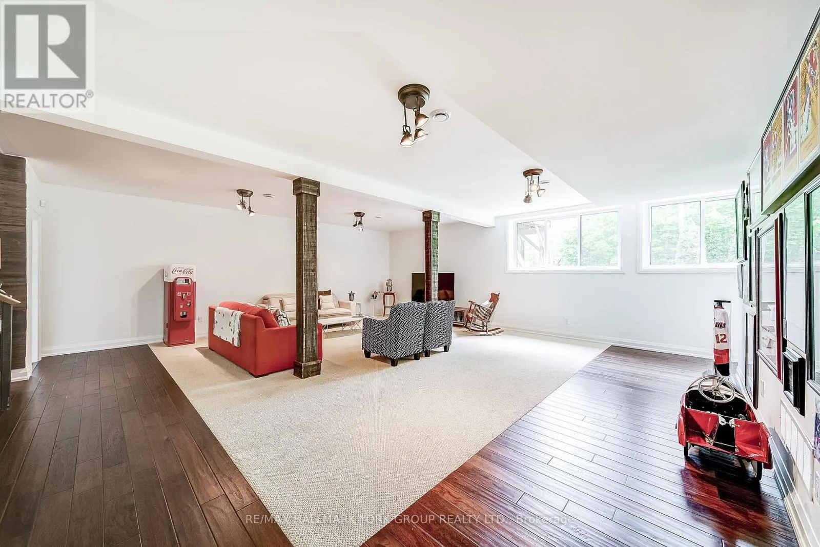 Custom-built raised bungalow showpiece set on a private half-acre lot in the desirable Snow Valley area of Springwater, offering more than 3,600 sq ft of finished living space just minutes from the City of Barrie. The open-concept main level features soaring cathedral ceilings, a wall of windows, and 3/4′ hickory flooring throughout. The thoughtfully designed kitchen includes custom cherry cabinetry,