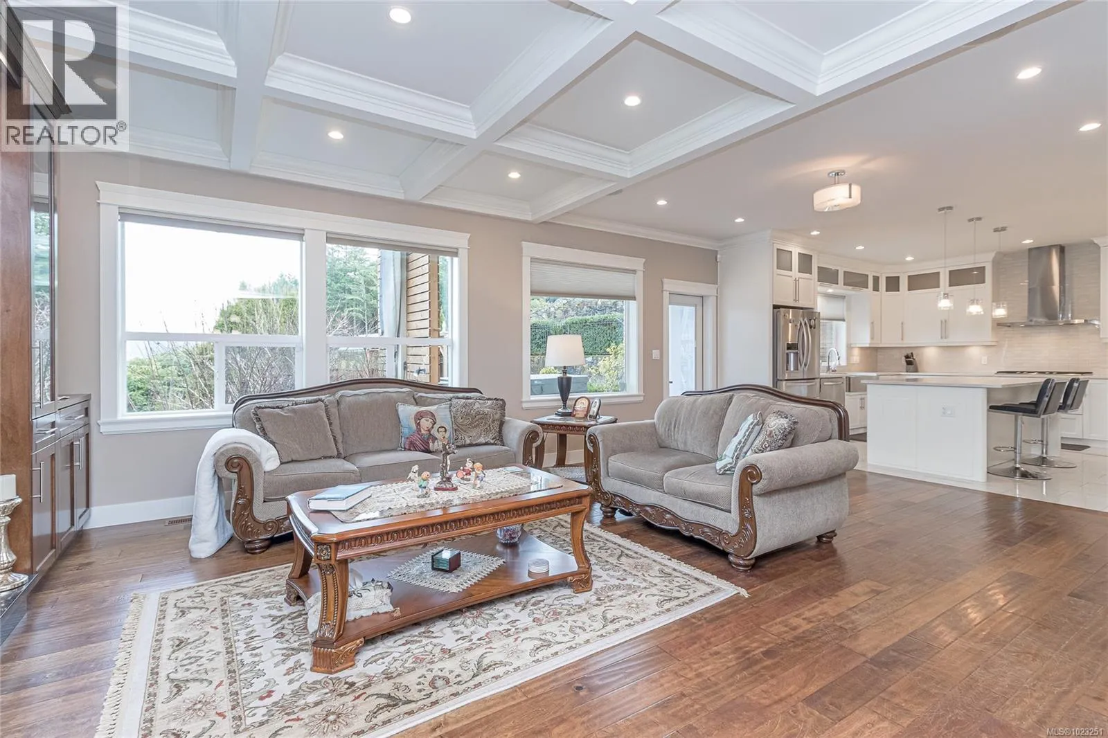 +"PublicRemarks": "Architecturally crafted and masterfully designed, this exceptional residence commands breathtaking views of the 9th fairway of the Jack Nicklaus Signature Mountain Course. Every detail has been thoughtfully curated, blending timeless sophistication with modern comfort. Expansive picture windows frame the scenic landscape, flooding the interiors with natural light and creating seamless harmony between indoors and out. The open-concept layout is perfect for entertaining, anchored by a gourmet chef’s kitchen featuring premium cabinetry, stone surfaces, professional-grade appliances, a generous walk-in pantry, and island seating for casual dining. The elegant dining area flows effortlessly into a welcoming living room enhanced by a fireplace and custom millwork—ideal for quiet evenings or lively gatherings with family and friends. A versatile recreation room, private study, powder room, and well-appointed mudroom with laundry facilities and a pet spa complete the main level. Upstairs, the owner’s retreat is a sanctuary of relaxation, featuring a sumptuous walk-in closet and a 5-piece spa-inspired ensuite with a luxurious steam shower. The lower level continues to impress with two additional bedrooms, a home theatre, a second study, and a fully equipped fitness studio complete with a rejuvenating sauna and 4-piece bath. Outside, the expansive patio offers an oasis of tranquility, overlooking the manicured grounds of the golf course. Whether you’re enjoying your morning coffee, hosting guests, or soaking in the sunset, this outdoor space provides the perfect backdrop for every occasion. Ideally located - only a short drive to downtown Victoria, the Victoria International Airport, and BC Ferries, this home offers both convenience and exclusivity. Experience the ultimate in refined living, where luxury, leisure, and lifestyle converge in perfect balance. (id:62650)"