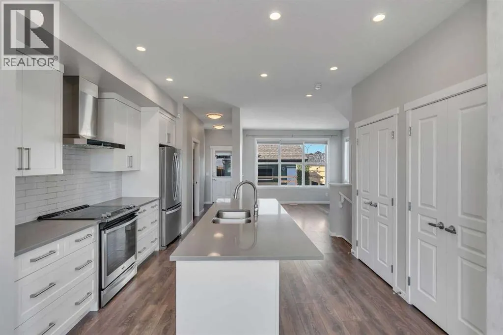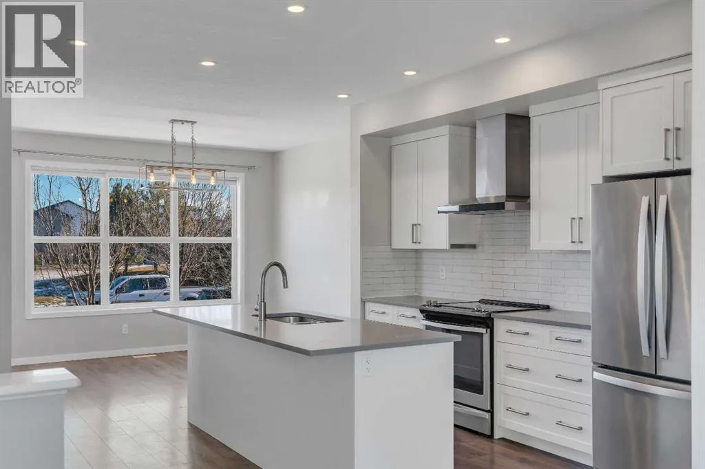 +"PublicRemarks": "Positioned on a coveted corner lot directly across from green space, a picnic area, and a playground, this beautifully designed Mahogany home offers an elevated lake community lifestyle with comfort and functionality at its core. Oversized windows flood the open main level with natural light, highlighting durable LVP flooring, designer lighting, and a layout built for both daily living and entertaining. A front-facing dining area captures peaceful park views, while the kitchen features quartz countertops, stainless steel appliances, timeless subway tile, and a large breakfast bar island ideal for casual meals and gatherings. The living room overlooks the sunny west-facing yard through corner windows, creating a relaxed space for evenings at home. A conveniently located powder room near the rear entry adds everyday practicality. Upstairs, the primary retreat feels private and calm with corner windows, a walk-in closet, and a stylish 3-piece ensuite. Two additional well-sized bedrooms share a 4-piece bathroom, and upper-level laundry provides added convenience. Outdoor living shines in the west-facing backyard with a spacious 20x20 deck complete with pergola and privacy screens, offering both sun and shade for entertaining or relaxing. A gas line for the barbecue, a grassy play space, a double detached garage with 60-amp service, and a storage shed complete the yard. Central air conditioning ensures summer comfort, while the undeveloped basement offers excellent future potential. Located in the heart of Mahogany, Calgary’s premier four-season lake community, residents enjoy walking access to the main beach, the residents-only Beach Club, and over 20 acres of beaches, wetlands, and pathways, with shops, restaurants, schools, parks, and playgrounds all thoughtfully integrated nearby for a connected and active lifestyle. (id:62650)"