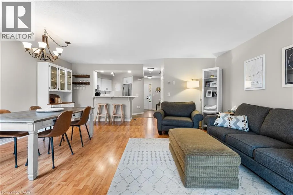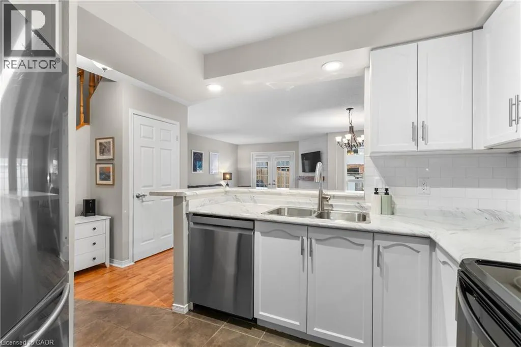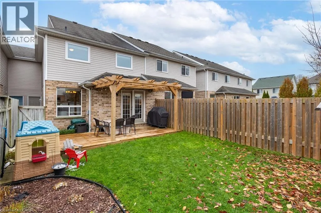 +"PublicRemarks": "Welcome to Townline Estates! This well-maintained freehold townhome offers an ideal blend of comfort, functionality, and location. Featuring 3 bedrooms and 2 bathrooms, this home is perfect for families, professionals, or first-time buyers. The open-concept main floor is bright and inviting with a carpet-free layout, highlighted by a cozy electric fireplace in the family room. The modern kitchen boasts stainless steel appliances, a breakfast bar, and a built-in microwave, making it ideal for both everyday living and entertaining. Convenient garage access from the front foyer adds everyday practicality. Upstairs, the spacious primary bedroom offers ample room to unwind, while the cheater ensuite provides added convenience. Step outside through French doors to a private, fully fenced backyard featuring a deck with pergola—perfect for summer entertaining. Additional exterior highlights include an attached garage, private double driveway, and stamped concrete accents. The unfinished basement offers excellent future potential and includes rough-ins for a bathroom and central vacuum. Notable updates include: Fridge (3 yrs), Furnace (4 yrs), A/C (3 yrs), Owned water softener (6 yrs) and Roof (approx. 8 yrs) Ideally located minutes to Highway 401 access via Townline Road, and close to amenities, schools, and shopping. A fantastic opportunity to own in a desirable neighbourhood—move-in ready with room to grow. (id:62650)"