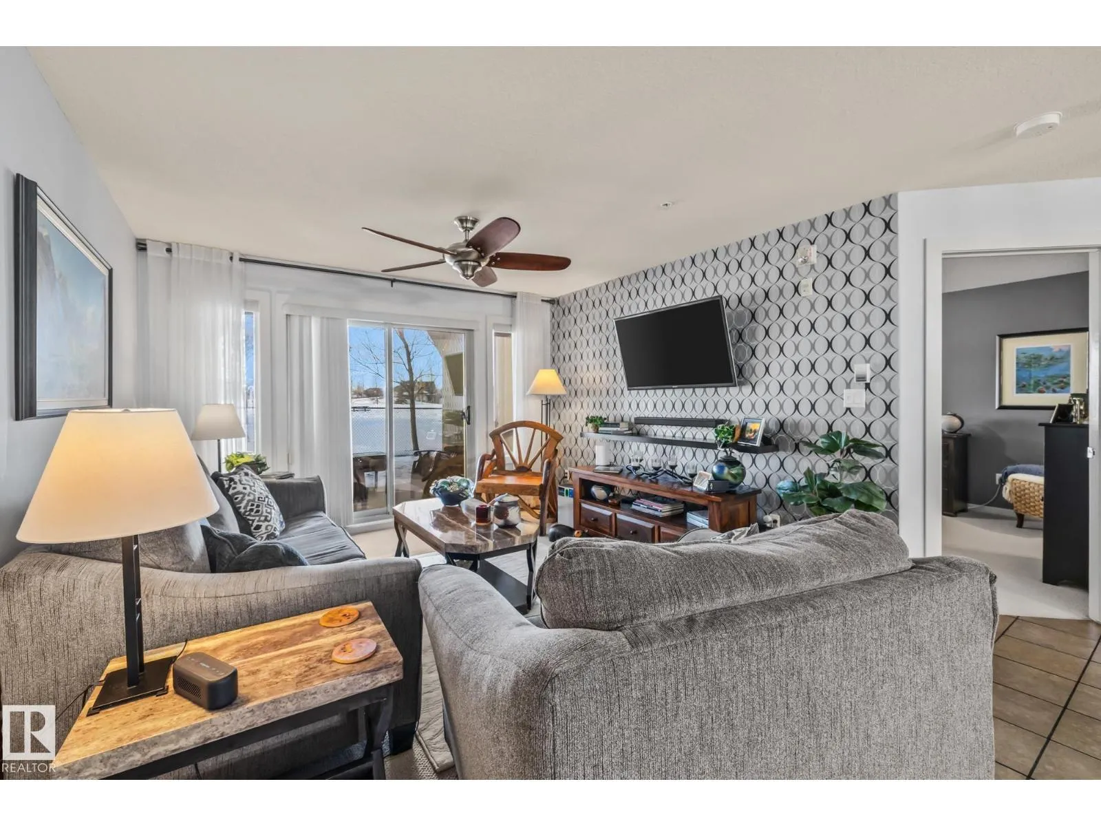 Welcome to The Lodge at Lewis Estates a stunning main floor 2-bed, 2-bath condo set alongside Lewis Estates Golf Course in a sought-after 30+ community.The functional floor plan offers a spacious kitchen finished with quartz countertops and quality stainless steel appliances, including an induction range, Bosch ultra-quiet dishwasher, and a double-door, two-drawer refrigerator with water dispenser. The large dining area