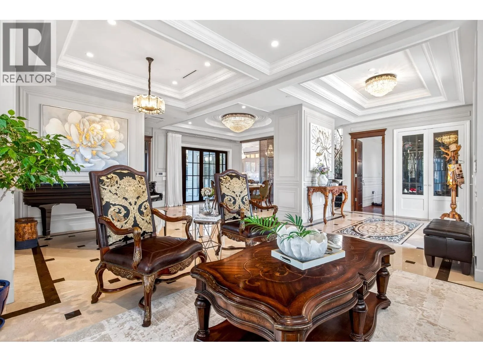 +"PublicRemarks": "Anchored on an impressive 10,652 SF corner lot in prestigious Shaughnessy, this remarkable custom estate showcases approximately 6,400 SF of impeccably designed living space, crafted for refined living and grand entertaining. The gourmet kitchen is a showpiece, appointed with elite appliances, custom millwork, and seamless access to a sun-filled patio for effortless indoor-outdoor flow. Four expansive, luminous ensuite bedrooms occupy the upper level, while the lower level offers three additional ensuites and a generous recreation lounge. Meticulously landscaped, fully fenced grounds ensure privacy and elegance. A rare 450 SF laneway office completes this extraordinary offering-an iconic expression of luxury and architectural distinction. (id:62650)"