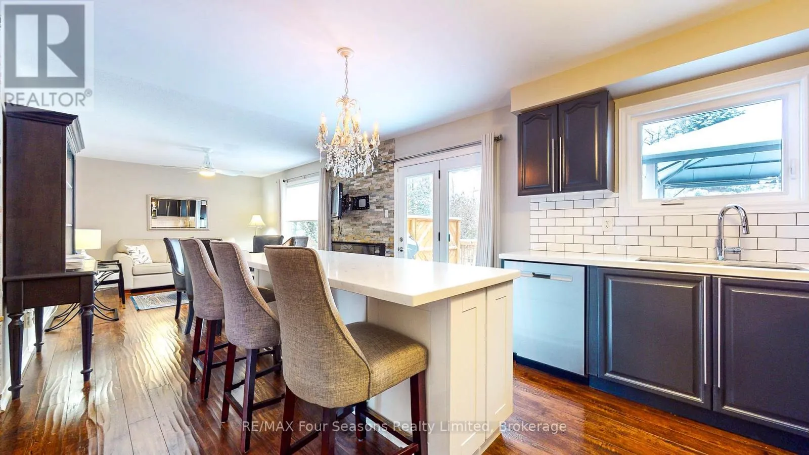 +"PublicRemarks": "Welcome to the perfect place to put down roots. Located on a quiet Crescent in Wasaga Beach, this fully renovated solid brick bungalow offers new home buyers the rare opportunity to move into a home where all the big work is already done, just unpack and enjoy. Thoughtfully renovated from top to bottom, the home combines modern style with everyday practicality. The main level features engineered hardwood floors, all new windows and doors, and a bright open feel throughout. The custom kitchen is designed for real life, with quartz countertops, soft close cabinetry, stainless steel appliances, a pot filler, and built-in dining cabinetry ideal for hosting friends, family dinners, or quiet mornings at home. A walkout leads to the back deck, extending your living space outdoors. The primary bedroom offers backyard views, a walk-in closet, and a spa-inspired ensuite with soaker tub and quartz finishes, a private retreat at the end of the day. A second main floor bedroom and stylish 3pce bathroom with quartz walk-in shower makes the layout functional and flexible, whether you're starting a family, working from home, or planning for guests. Downstairs the bright lower level adds even more value with a large rec room, a custom kitchenette with sink & cabinetry, a 3rd bath and two additional rooms perfect for a home office, gym, guest space or future family. Beyond the finishes this home has been upgraded for comfort, efficiency, and long term savings. Minutes from everyday amenities, this home offers the lifestyle many buyers are looking for. A newly fitted 12'x12' deck, stamped concrete rear patio and firepit are perfect for hosting or enjoying coffee under the gazebo, curating the great Wasaga lifestyle. Additional upgrades include a water softener, an in-ground sprinkler system, and a solar panel + battery system for energy efficiency. Located just minutes to Wasaga Beach, trails, schools and shopping. Please see attachment for upgrades and house features! (id:62650)"