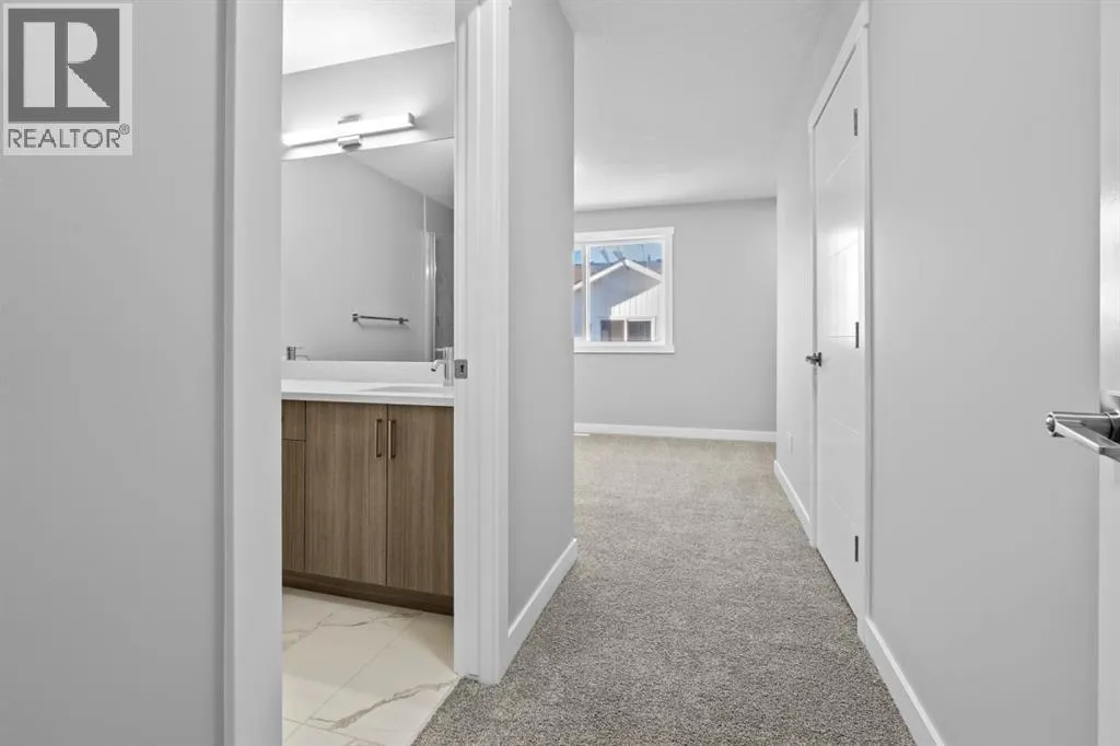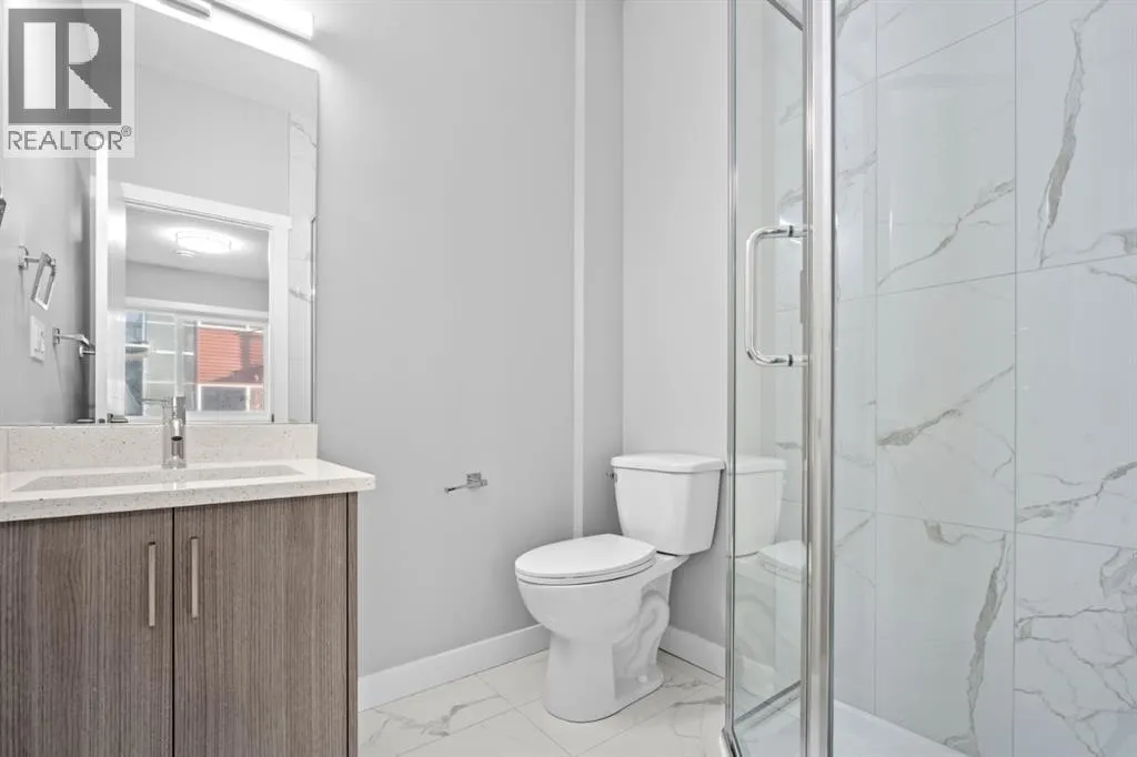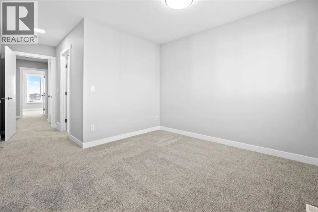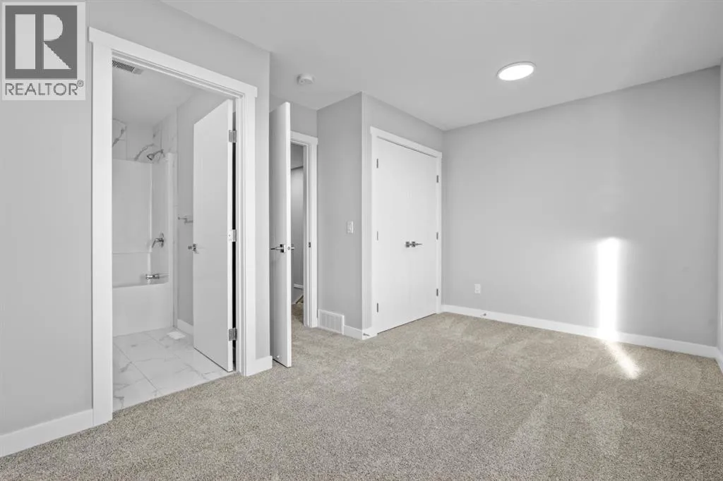 +"PublicRemarks": "This elegant modern 3-storey townhouse stands out with a thoughtful balance of privacy, smart use of space, featuring three generously sized bedrooms—each with its own ensuite bathroom, making it an excellent fit for families, working professionals, or shared and multigenerational living.The ground level offers a welcoming foyer and a versatile bedroom complete with a private ensuite, ideal as a guest suite, home office, or quiet personal space. The main living level is filled with natural light and designed for everyday comfort and entertaining, showcasing an open-concept layout, oversized windows, and a contemporary kitchen outfitted with stainless steel appliances, modern lighting, and a practical breakfast counter. A convenient powder room and access to a private balcony complete this floor.The upper level features two spacious primary-style bedrooms, both with their own ensuites for added convenience. One of the suites includes a walk-in closet and double vanity, creating a comfortable retreat. A stacked laundry closet on the top floor adds everyday ease.Additional features include a single attached garage, low condo fees, visitor parking, and planned nearby green space. Located with quick access to Stoney Trail, this home offers effortless commuting and easy access to daily amenities. Stylish, functional, and move-in ready—this townhome delivers comfort and flexibility in a highly accessible location. **Photos with furniture are virtually staged. (id:62650)"