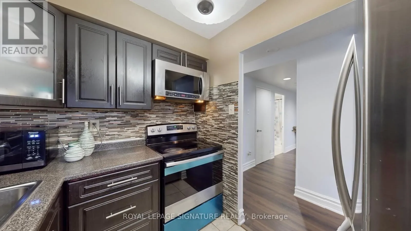 Bright and spacious, well-maintained 2-bedroom, 2-washroom condo apartment flooded with natural light from large west-facing windows. Features new flooring throughout and fresh paint. A convenient laundry closet with built-in shelving adds extra functionality and storage. The unit offers two generously sized bedrooms, including a primary suite with a 5-piece ensuite bath. The second bedroom is ideal for guests, children, or