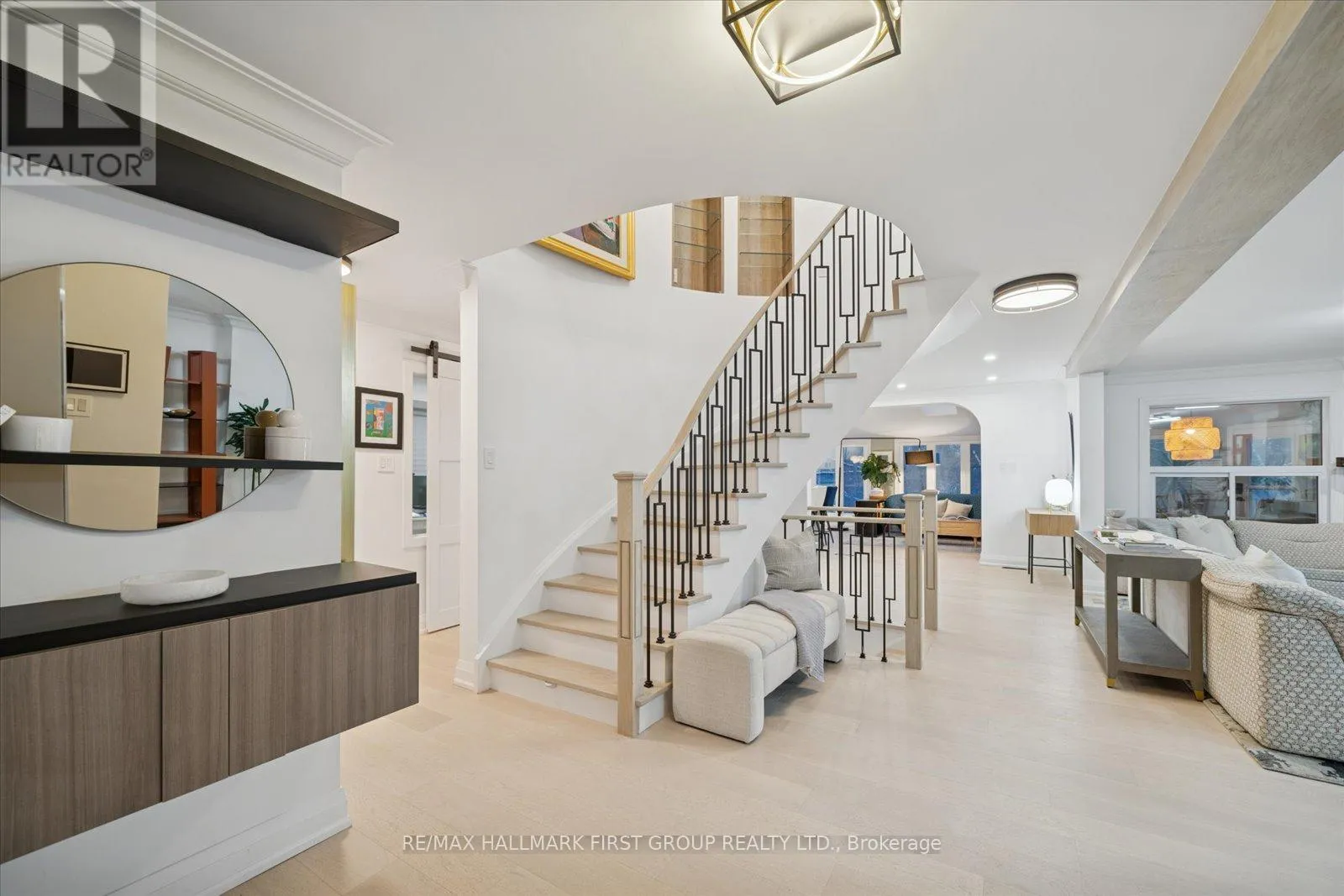 Welcome to an exquisitely renovated, designer-curated home in a coveted South Ajax location close to the lake, backing onto protected greenspace with a peaceful river flowing into Lake Ontario. Private, serene, and surrounded by nature, this exceptional residence offers refined finishes and effortless functionality.Completely renovated in 2022, the home features rich hardwood flooring, elegant crown moulding on the main floor,