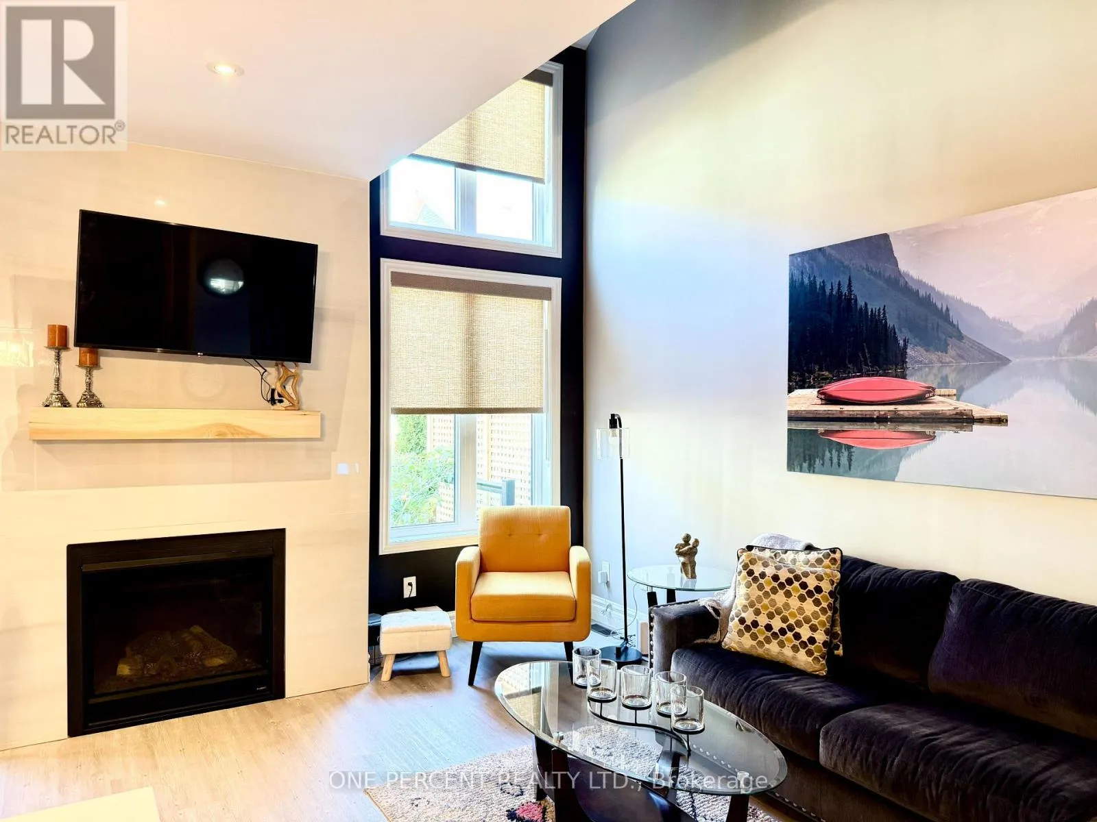 Welcome to 21 Lett Avenue, located in the sought-after Blue Fairway community. This bright and inviting(3)bedroom, (3) bathroom freehold townhome offers modern updates, a functional layout, and access to exceptional amenities.Inside, you will find fresh paint, soaring vaulted ceilings, a cozy gas fireplace with a charming wood mantle, stylish newer flooring, and upgraded light fixtures that add a polished touch.