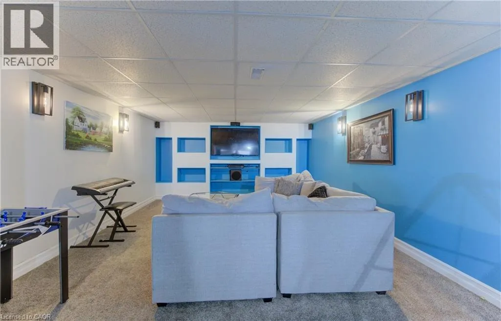 is visible from the kitchen and the dinette has a slider to fenced back yard oasis with salt water in-ground pool with overflow hot tub for summer entertaining. Fully finished basement has oodles of more space, a bathroom, huge rec room and another large space. Upstairs features a large primary suite with a walk in closet and an ensuite with separate shower and soaker tub, plus 3 additional bedrooms, main bath and an airy sitting area or office space. Be sure to book your private showing. New furnace and AC in 2022. (id:62650)