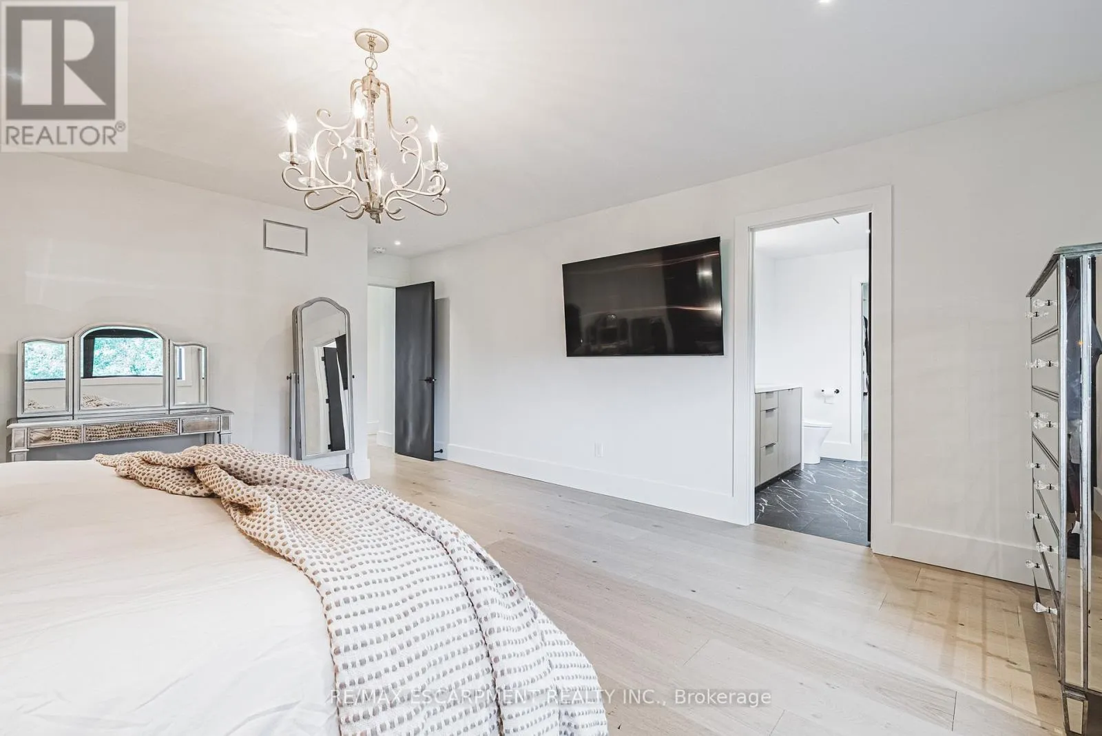 Custom, all brick, 2024 new build masterpiece sitting on a gorgeous lot backing onto mature greenery, and boasting a stately-modern presence from the road. Prestigious street lined with other custom homes. Prepare to be memorized by soaring ceiling in foyer open to above with breathtaking chandelier and open riser, white oak staircase with rod iron spindles. Perfect main level design