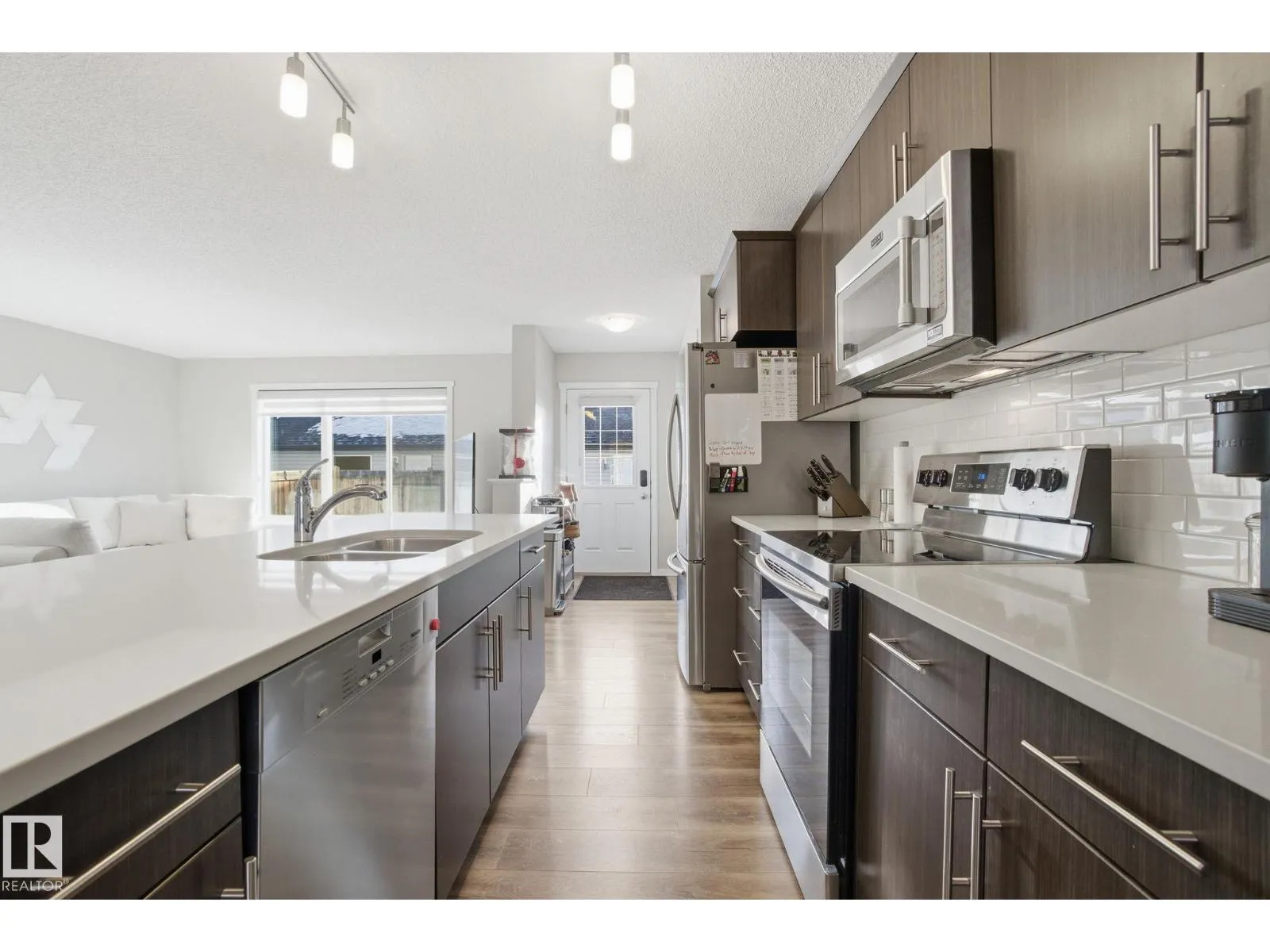 Beautifully maintained home, lovingly cared for by the original owners and free of condo fees! This bright, spacious 1,452 sq. ft. property features an open-concept main floor flooded with natural light, creating the perfect flow for relaxed living and entertaining. The modern kitchen has quartz counters, tile backsplash, premium stainless appliances with Miele dishwasher, functional pot-and-pan drawers and spacious pantry.