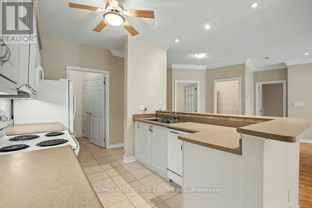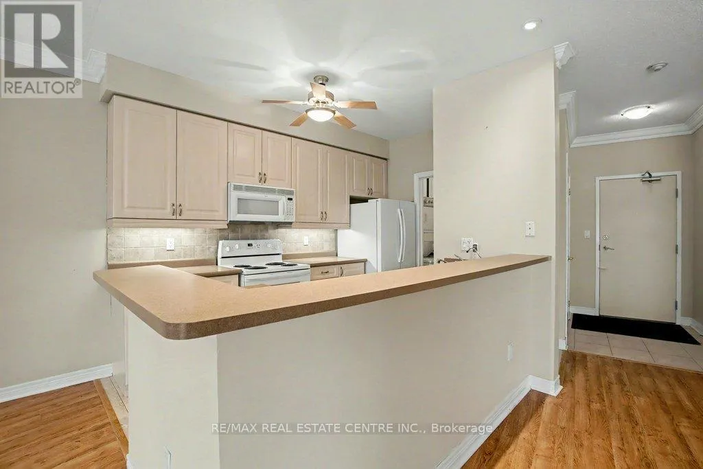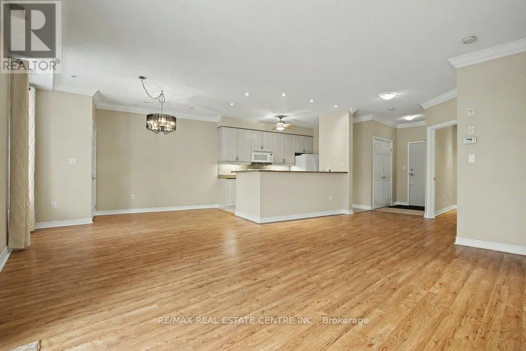 Beautiful open concept unit that fills with natural light from the plentiful windows overlooking a treed ravine. The inviting kitchen with breakfast bar opens to the vast dining room and living room with nine foot ceilings and walkout to 41 foot long balcony. The spacious bedroom is complimented by the convenient ensuite bathroom with long vanity, tub and shower