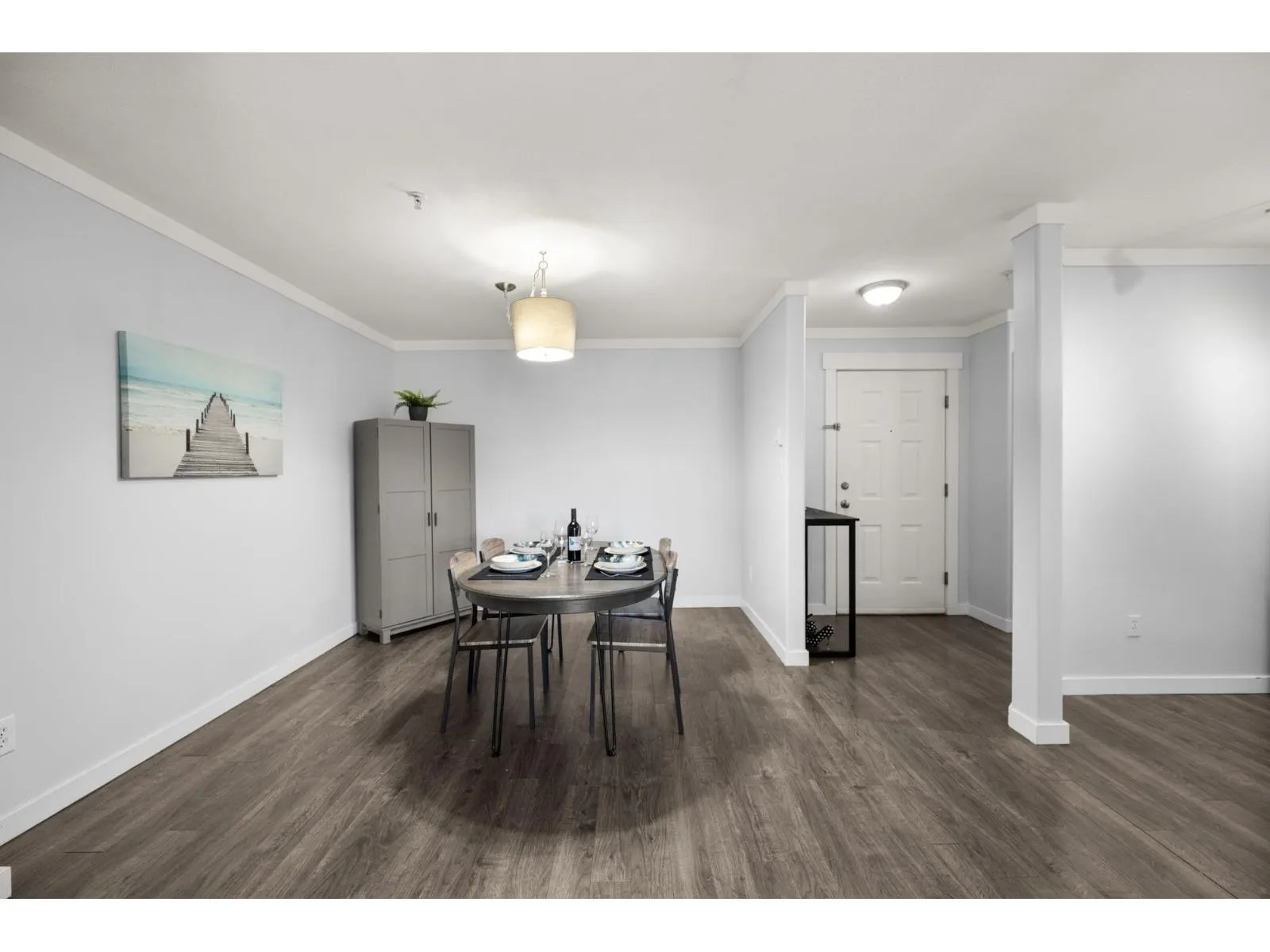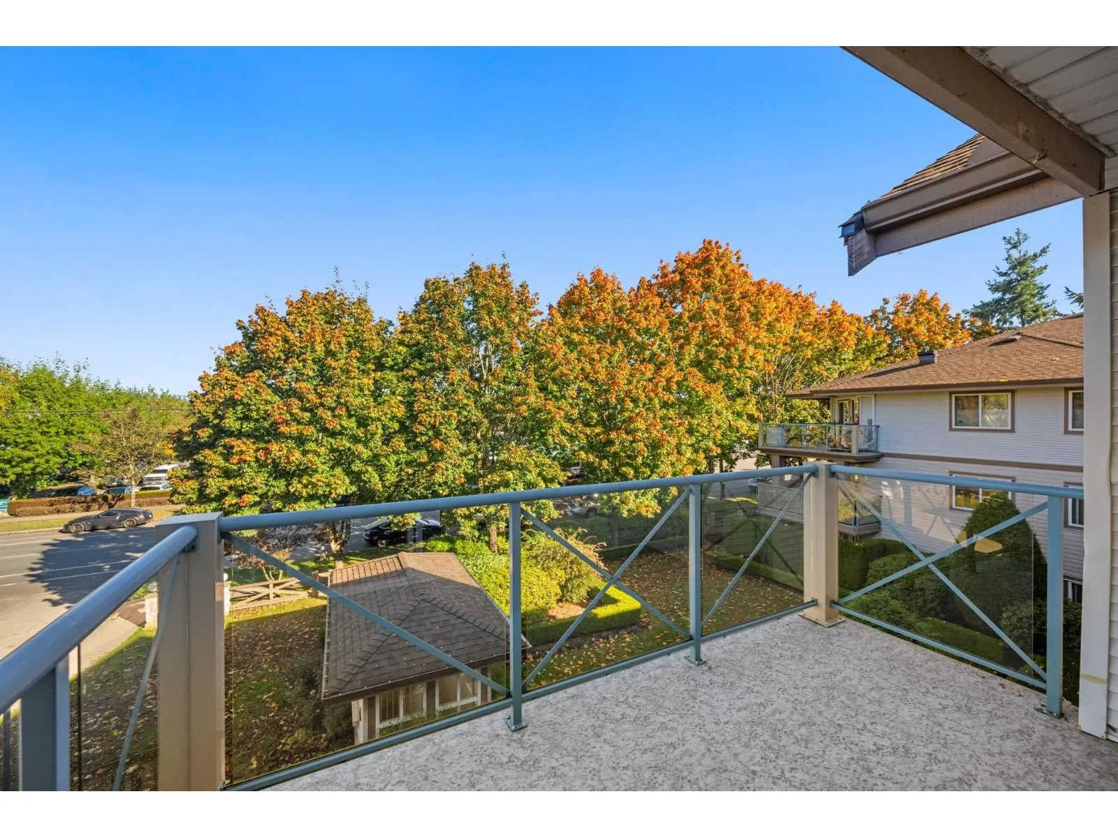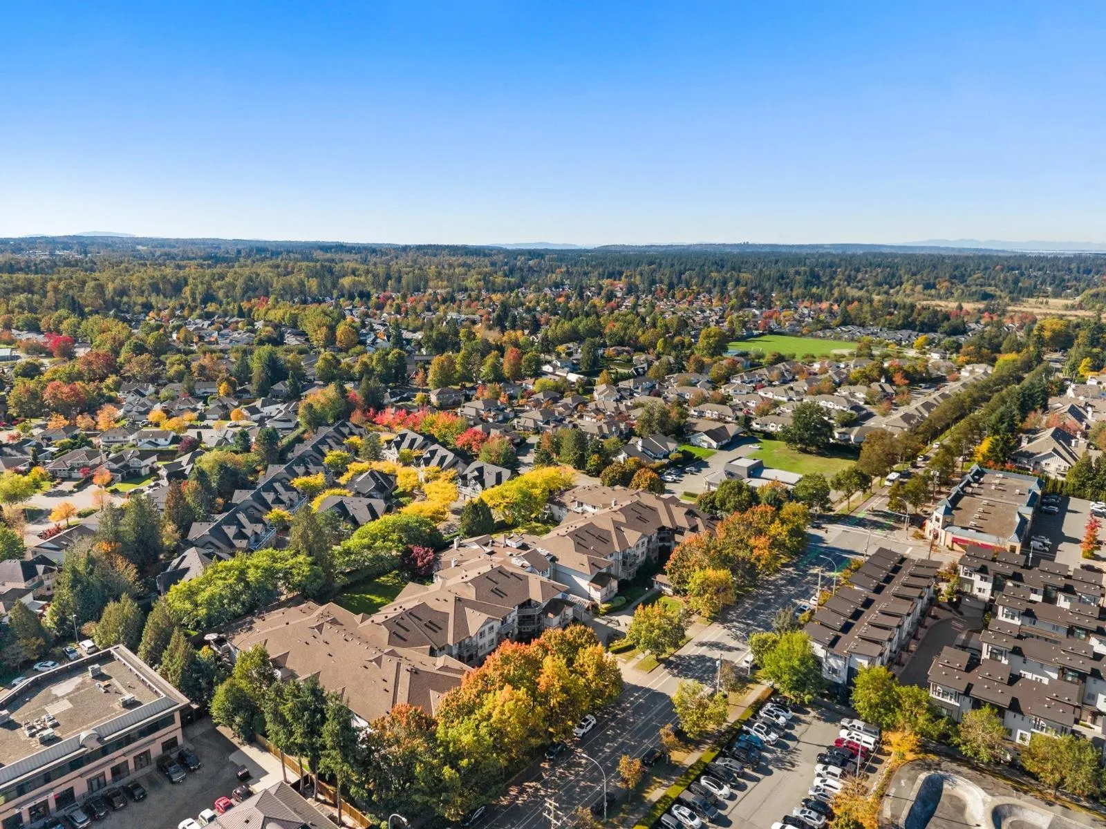 Top-floor living in the heart of Murrayville at Eaglecrest. This home features an open-concept layout with a centrally located kitchen that opens up to the main living areas, ideal for entertaining and everyday living. The living room is warm and inviting, highlighted by a gas fireplace and mountain views from the patio. A thoughtfully designed floor plan places the spacious