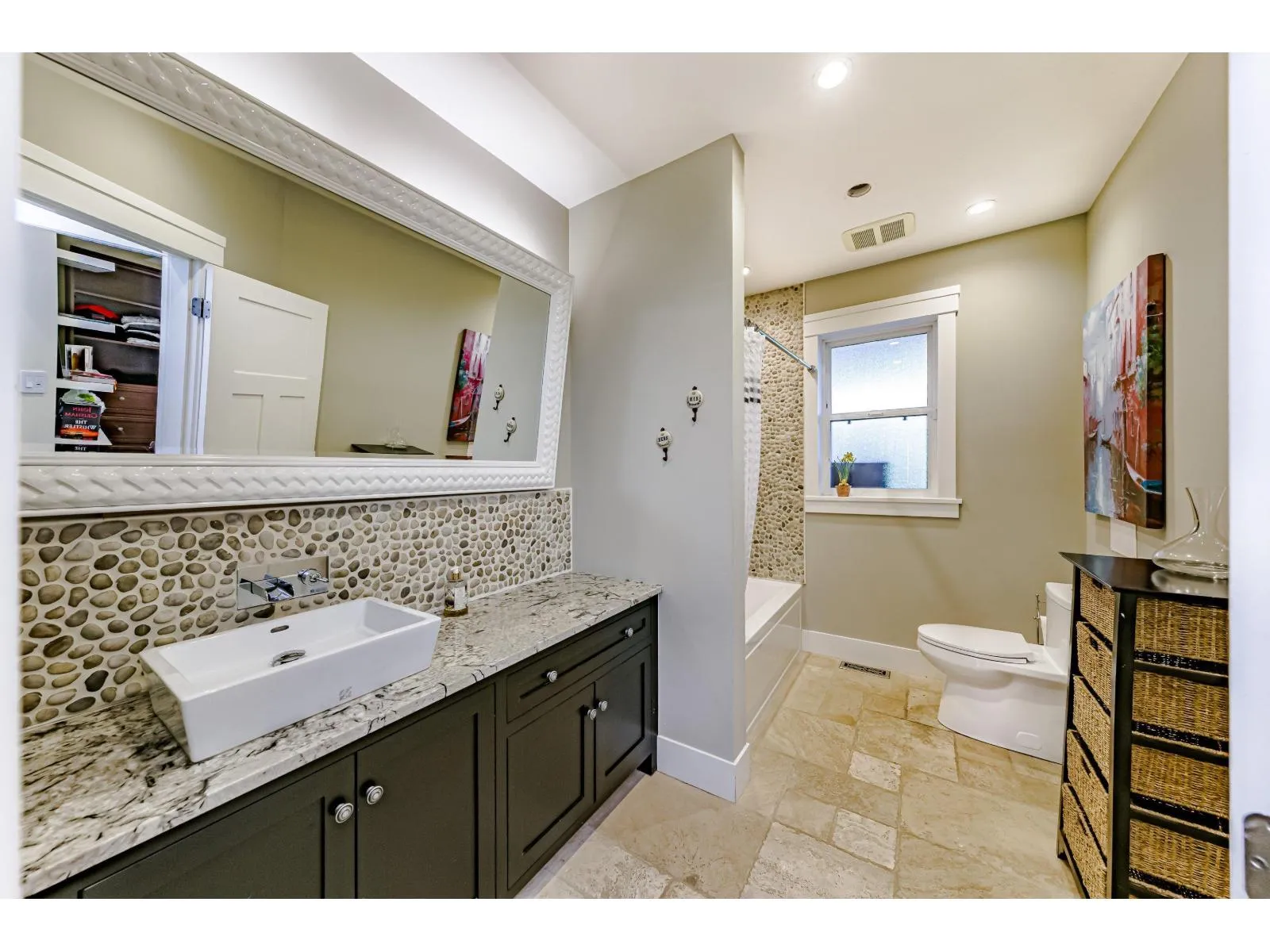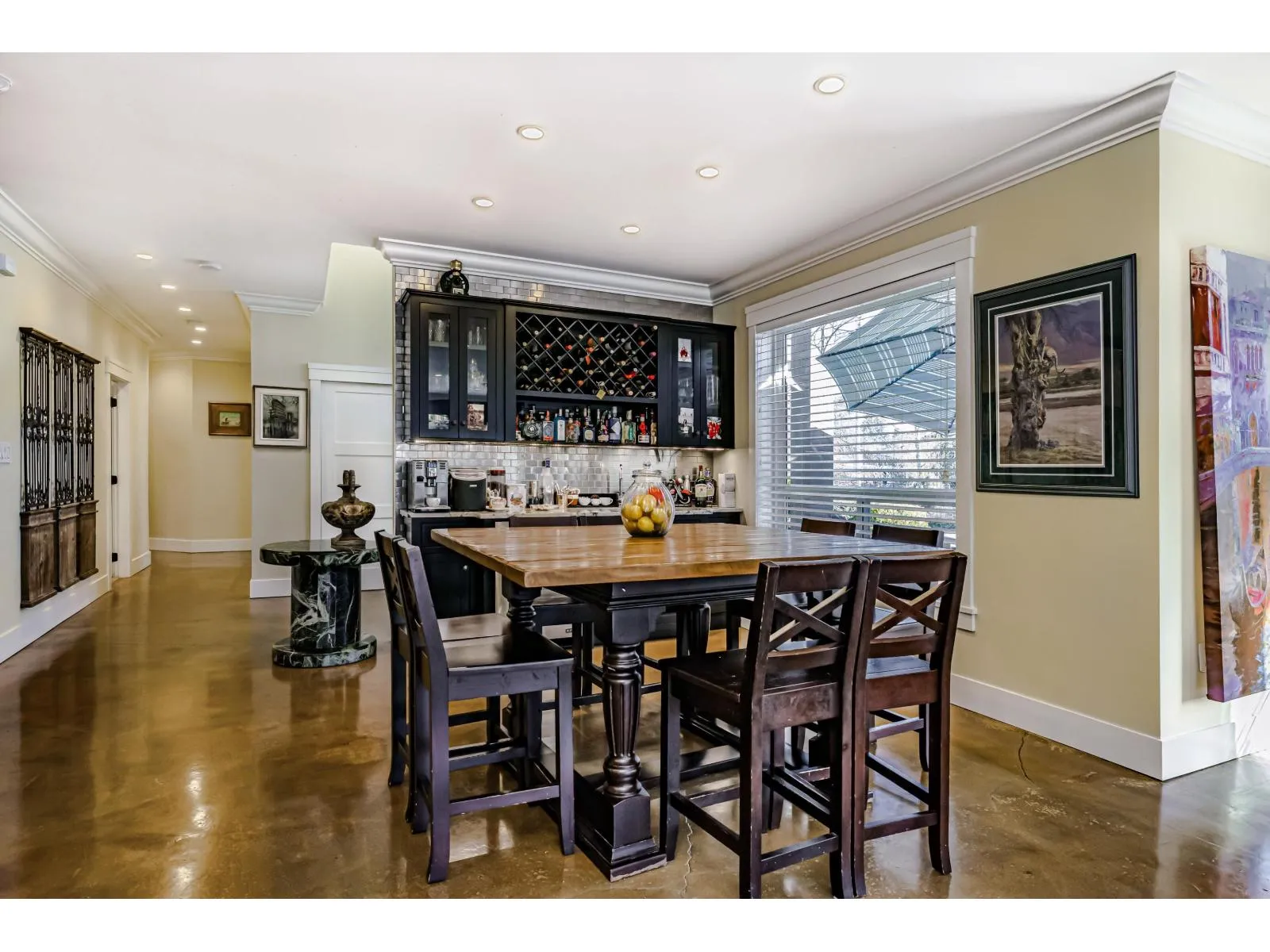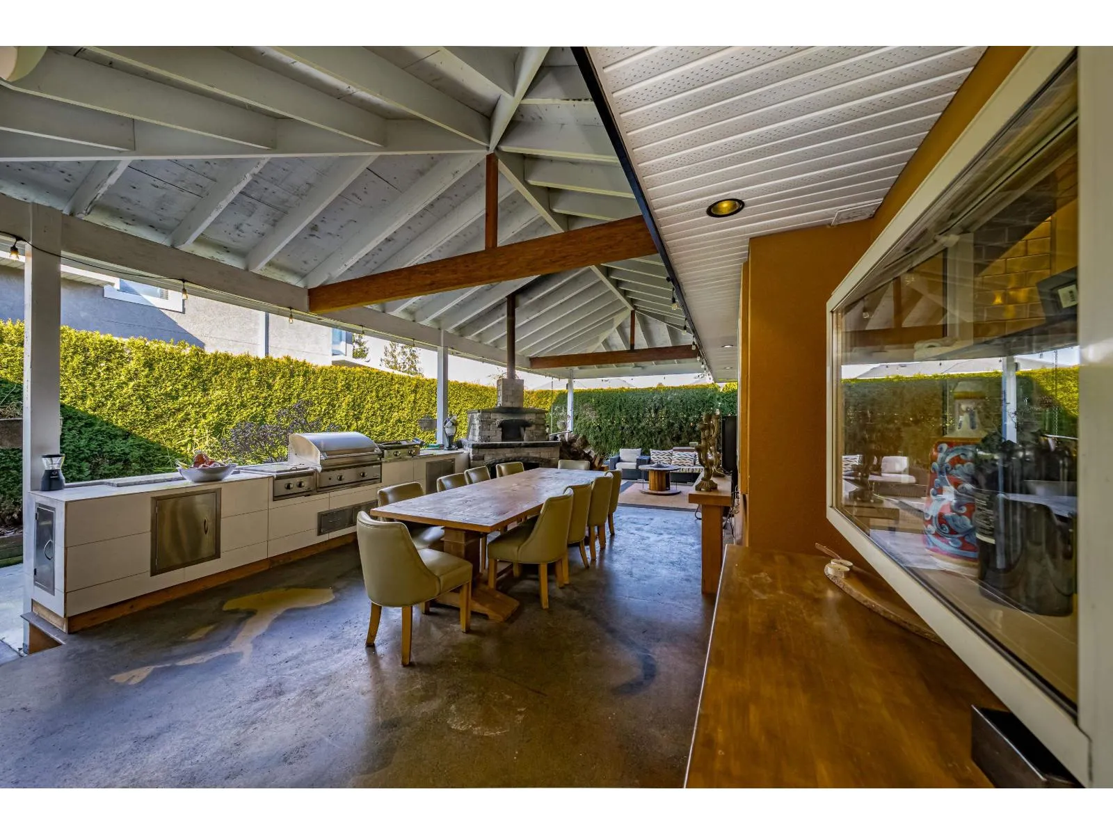 This 2,500 sq. ft. custom rancher sits on an 8,070 sq. ft. landscaped lot on a private road across from Northview Park. Fully renovated with high-end finishes, the home features 9-ft. ceilings, polished epoxy concrete floors, over 90 recessed lights, custom millwork, and built-in furniture throughout. The chef’s kitchen boasts a 6-piece Jenn-Air appliance package, wet bar, and large pantry.