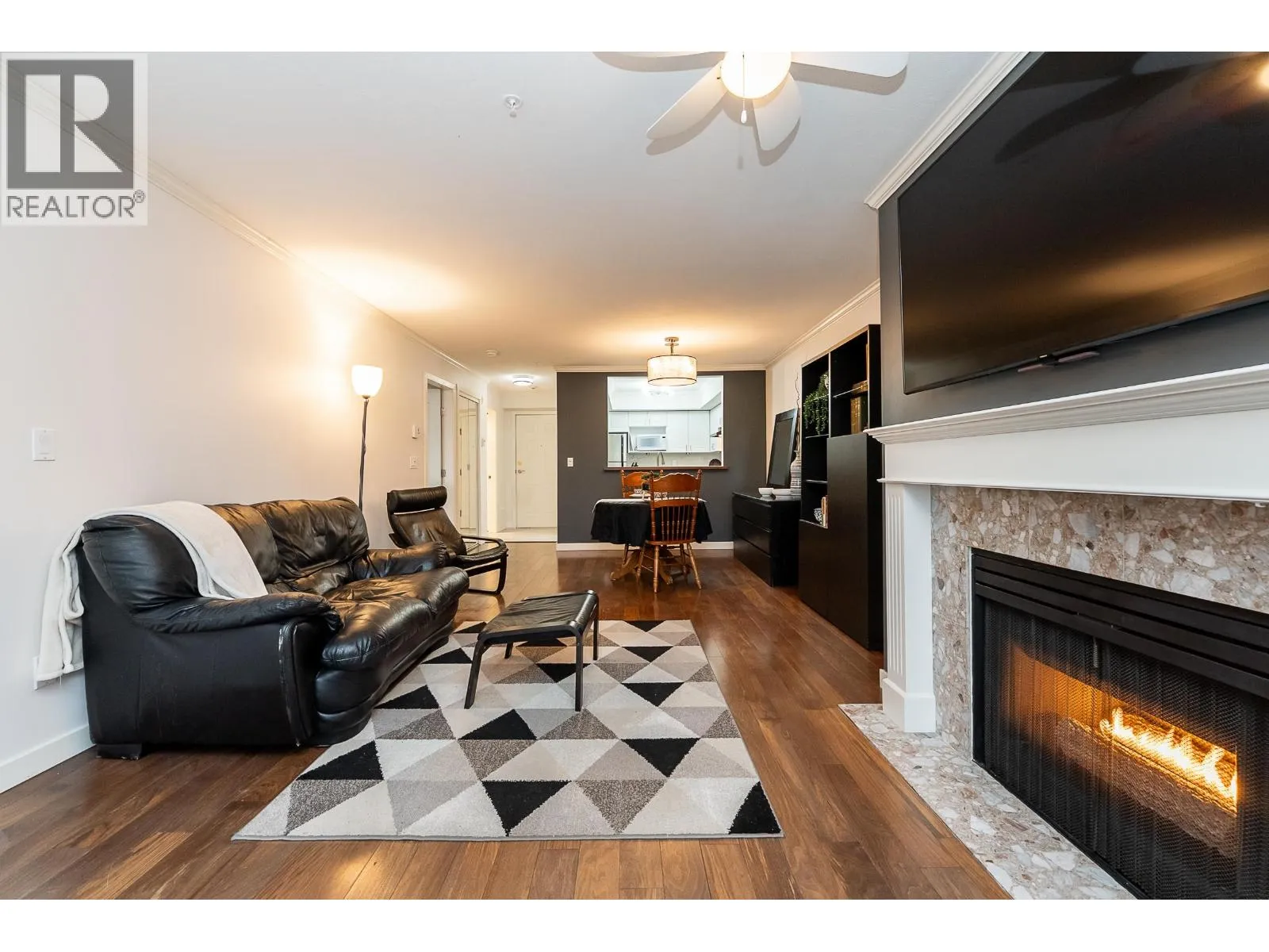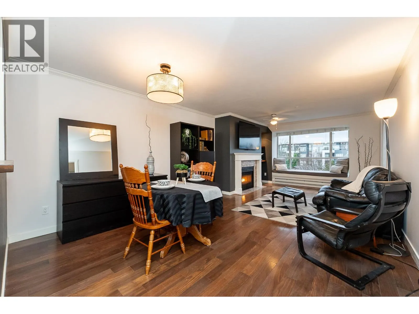 +"PublicRemarks": "Beautifully updated 1 bedroom, 1 bathroom home located in the heart of Port Coquitlam! Offering 729 square ft of well-designed living space, this inviting home features a modernized kitchen with quartz countertops, an under-mount sink, stainless steel appliances, a stylish backsplash, and abundant cabinetry and prep space. The dining area flows seamlessly into a generous living room highlighted by a cozy gas fireplace and an oversized window with built-in seating. Also enjoy a private balcony off the living. The spacious bedroom accommodates a king-size bed, has a walk-in closet and convenient cheater ensuite. Ideally situated just steps away from shopping, restaurants, scenic trails, the Port Coquitlam Recreation Centre, with quick access to the West Coast Express and Lougheed Highway. (id:62650)"