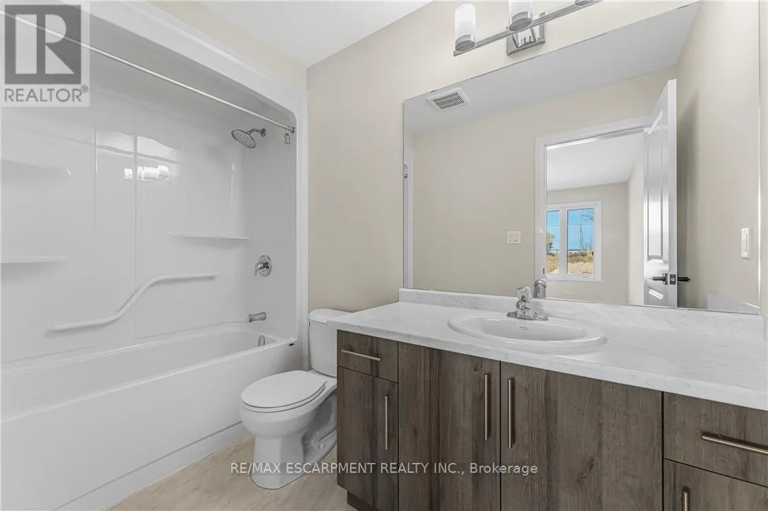 Discover modern living in this newly constructed 3-bedroom, 3-bathroom townhouse in the Fieldstone development. Offering 1,383 square feet of thoughtfully designed space, this home combines style and functionality. The main living area boasts upgraded vinyl plank flooring, creating a sleek and inviting atmosphere. The kitchen features premium upgrades, including a water line to the fridge and a stylish backsplash, perfect