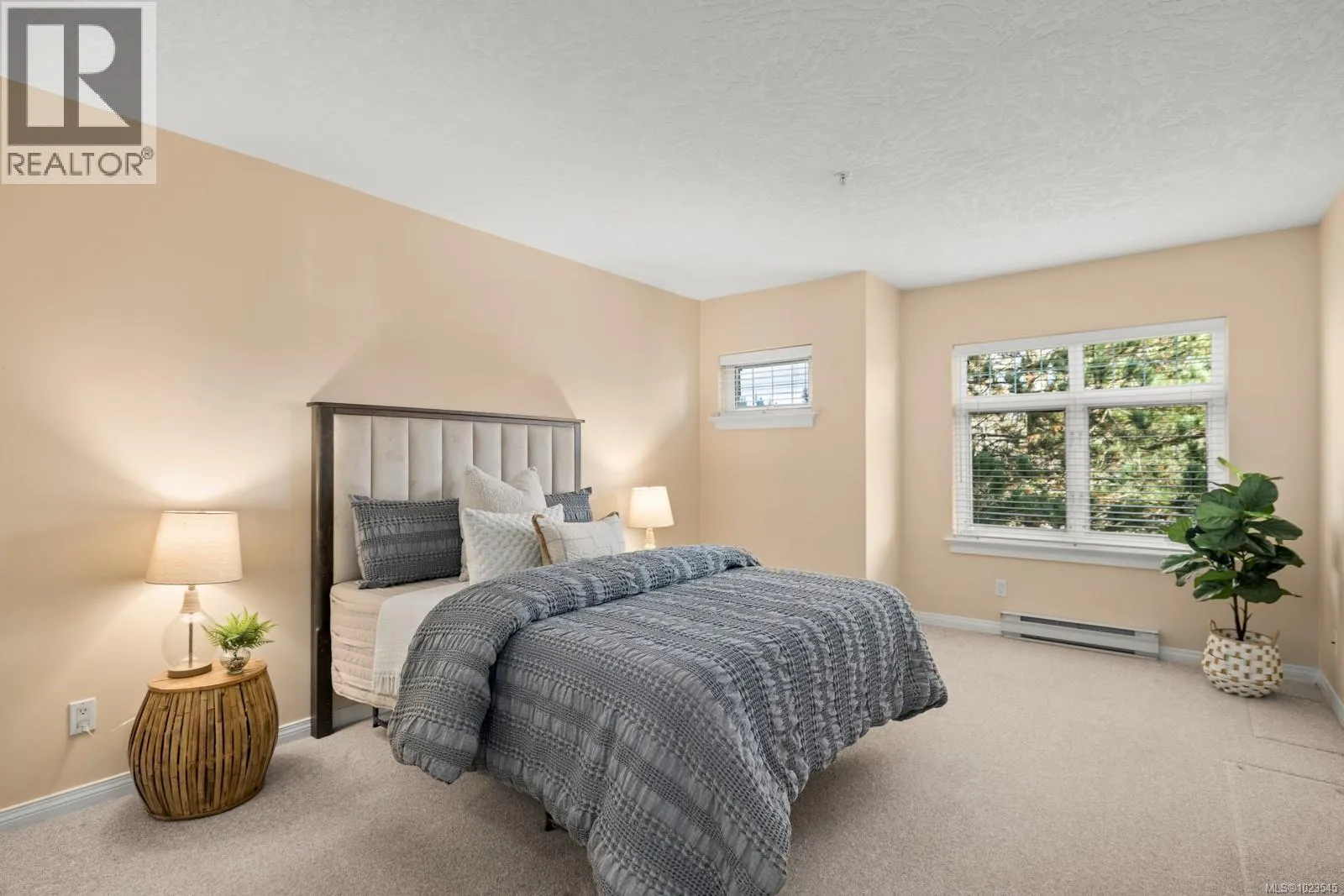 Welcome to Broadmead Terrace. This southeast corner, two-bedroom, two-bath second-floor home overlooks Rithet’s Bog with gorgeous, peaceful greenbelt views and excellent natural light. The functional layout offers good separation, with bedrooms and bathrooms on opposite sides of the open living space. Generous living and dining areas feature crown mouldings and a gas fireplace. The kitchen includes an eating area and
