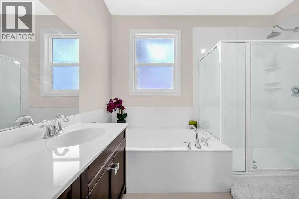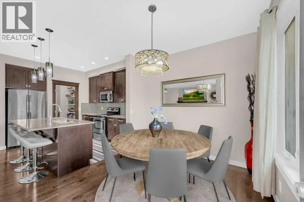 +"PublicRemarks": "Welcome to this stunning 4 bed, 3.5 bath semi-detached home inRedstone, offering over 1900 sqft above grade plus a fully finishedillegal basement suite with separate entrance.Main floor features an open-concept layout, 9 feet ceilings (at all 3 levels), hardwoodflooring, a chef’s kitchen with granite island, stainless steelappliances & walk-in pantry, plus a bright living room with fireplace.Upstairs boasts a luxurious primary suite with 5-pc ensuite & customwalk-in closet, two more bedrooms, a spacious great Room & full bath.Basement offers a 1-bed illegal suite with full kitchen, 4-pc bath &spacious rec room. New Roof and siding done.New Garage Door.Brand New stove installed in the main floor Kitchen. Enjoy a double attached garage, landscaped & fenced backyard, deck,well cared beautiful shrubs. Minutes to major routes, like StoneyTrail, Metis , Deerfoot and airport, and future elementary schoolcoming soon. Walking distance from the bus stop. This home truly has itall!?? Book your showing today! (id:62650)"