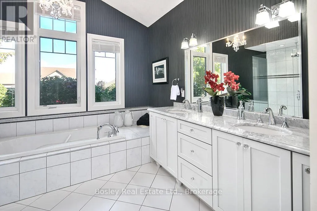 Introducing a stunning 5-bedroom custom residence by renowned builder Dezign2000, perfectly situated in the exclusive Lora Bay community. Backing onto the driving range and surrounded by mature trees and landscaped gardens, this home offers luxurious seclusion and refined living. Inside, wide-plank oak floors, soaring ceilings, and timeless design set the tone. The gourmet kitchen features white shaker cabinetry, granite counters,
