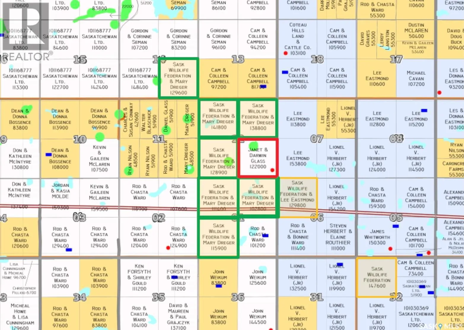 7 lease quarters (Buyer must apply to Sask Wildlife and qualify) and 1 deeded home quarter with a complete ranching or farming headquarters. This well-equipped property features a 5-bedroom home with newer water heater, updated furnace, flooring, shingles, and electrical, plus a detached two-car garage. Yard improvements include a 50′ x 80′ steel quonset with power, barn with water hydrant,