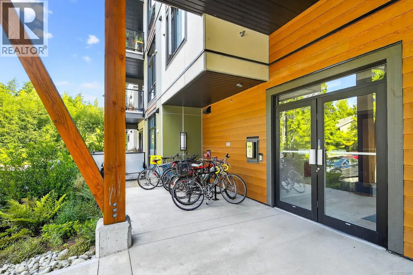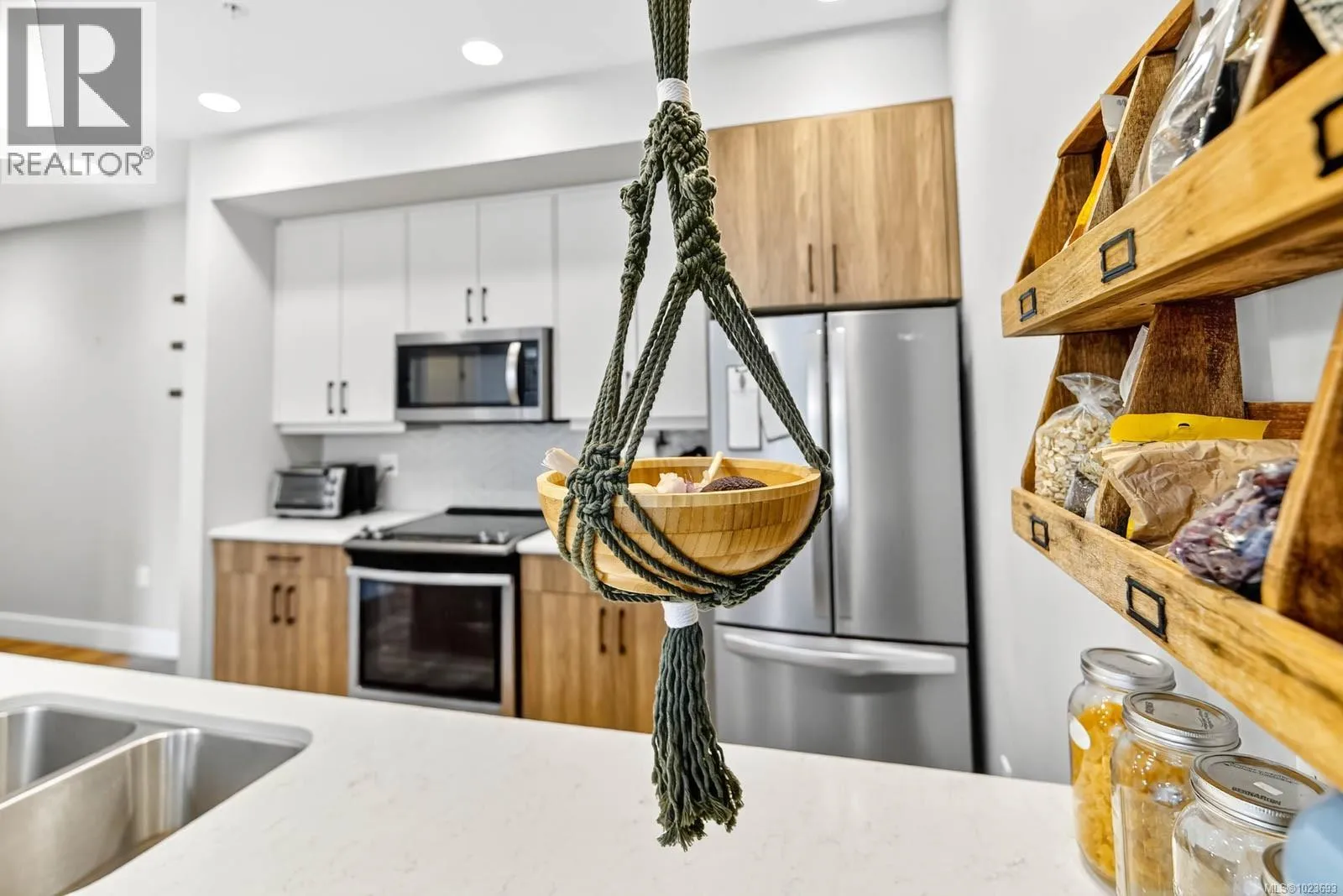 One of the largest units in the building, this top-floor condo built in 2020 combines modern design with West Coast charm. The bright, open layout features high ceilings, expansive windows that fill the space with tons of natural light, and a cozy fireplace for added warmth. A sleek, open-concept kitchen provides plenty of room for family dinners or entertaining friends.