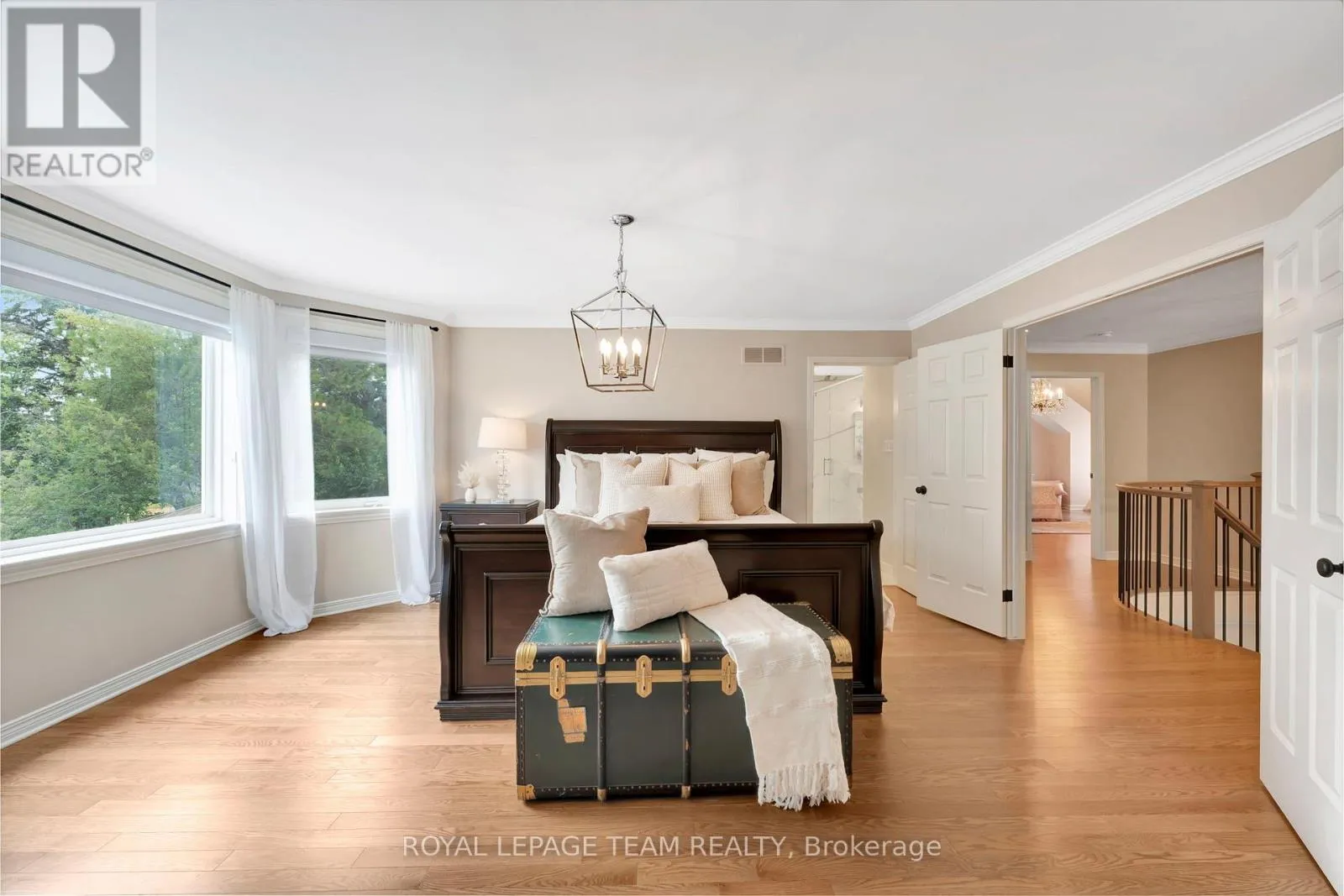 A rare offering in prestigious Crossing Bridge, this 5 bdrm, 4 bath residence is a showcase of timeless craftsmanship, modern comfort, and over $550K in curated upgrades. Offering approx. 3,860 sq.ft. + fin. basement, this residence features a grand entrance opening to expansive great rm w/ 9-ft ceilings, elegant wainscoting, bespoke crown moldings & stately wood-burning fireplace, leading to landscaped