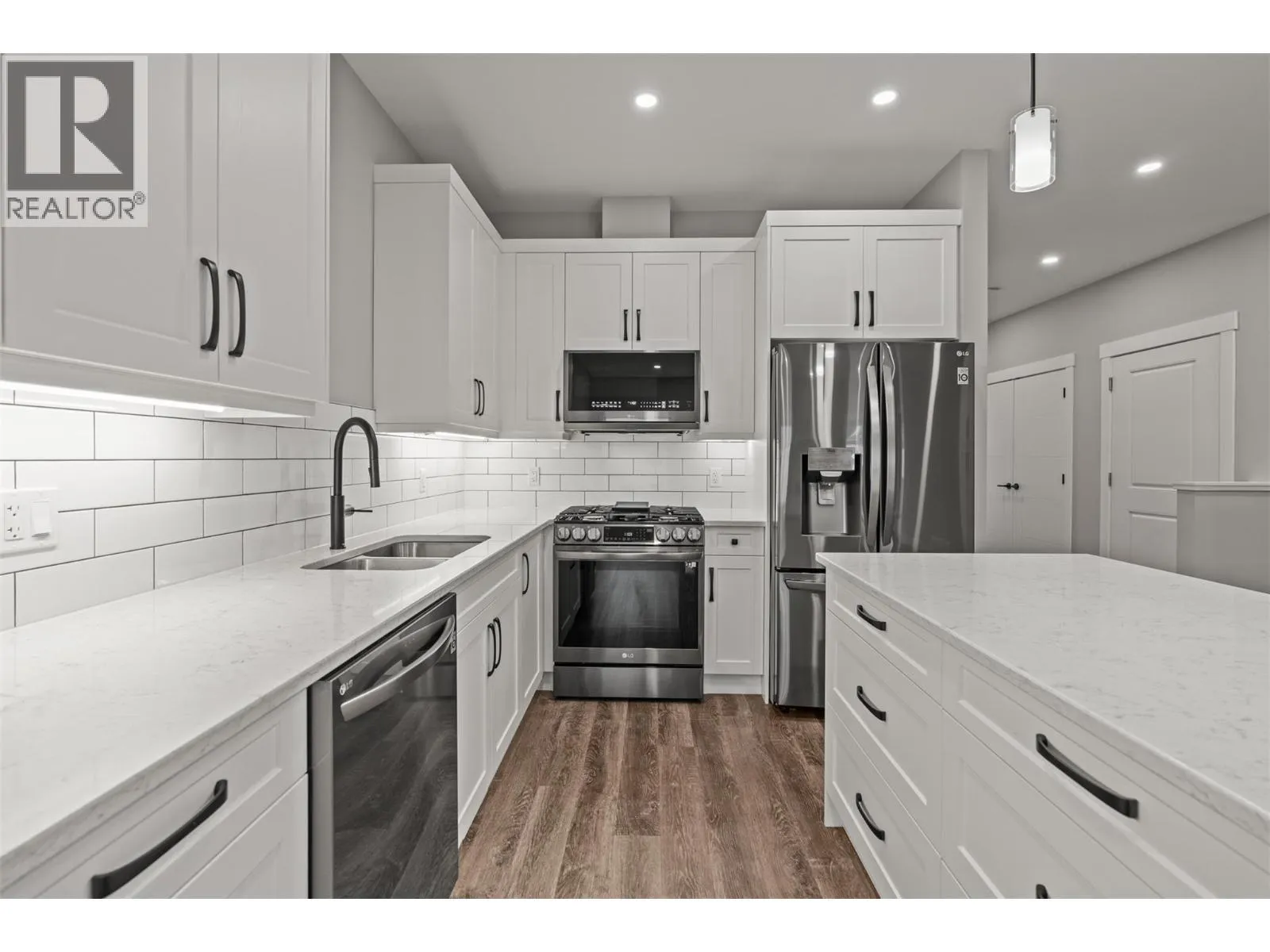 Welcome to Uptown Village, a beautifully maintained rancher-style home with a fully finished basement. Offering 3 bedrooms, 3 bathrooms, garage and parking pad. This home features a fully landscaped yard and thoughtful upgrades throughout. Enjoy over $76,000 in upgrades including quartz countertops in the kitchen and bathrooms, air conditioning, a gas fireplace, under-cabinet kitchen lighting, a gas range, and a